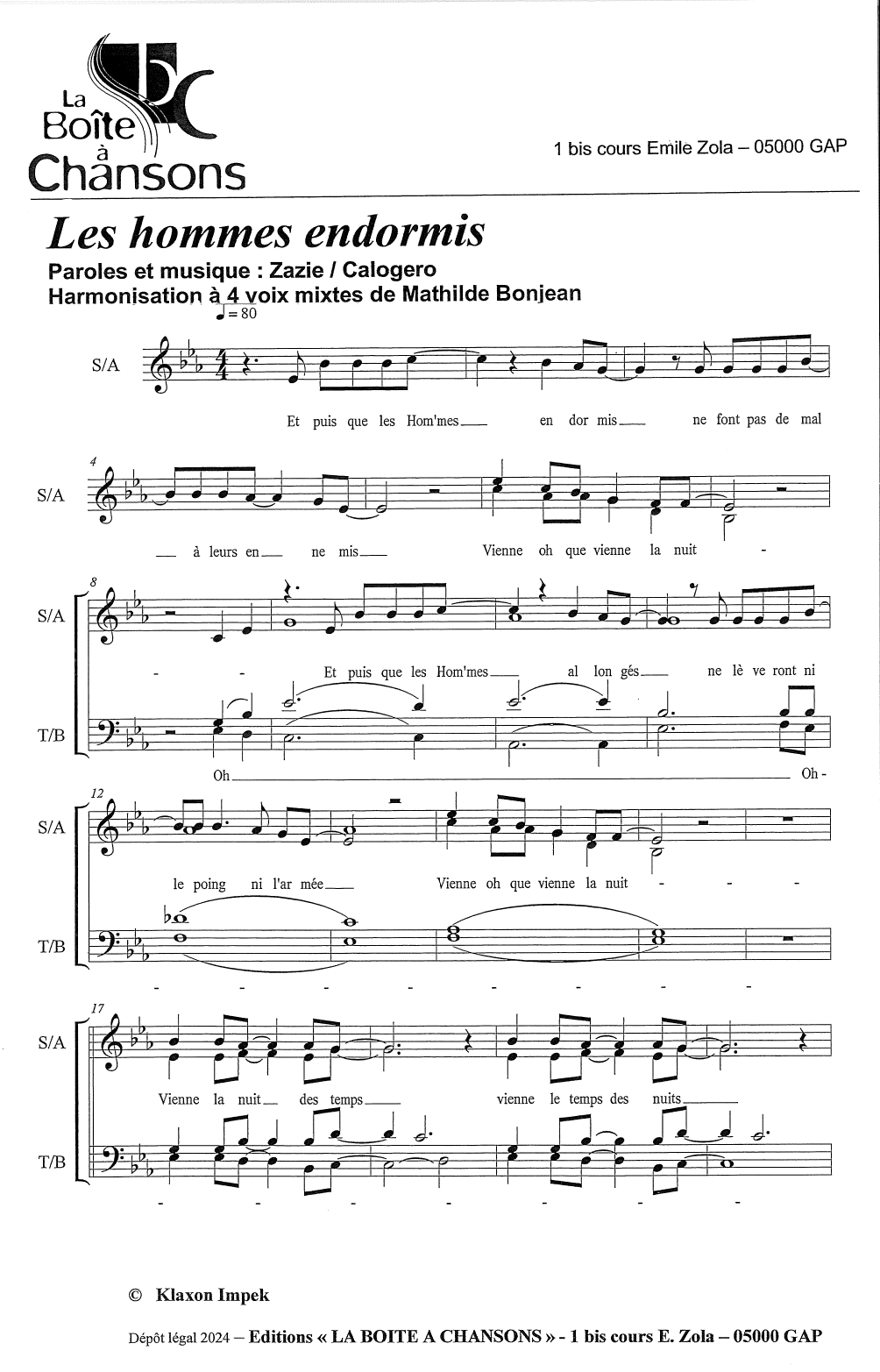 Harmonisation à 4 voix mixtes de Mathilde Bonjean