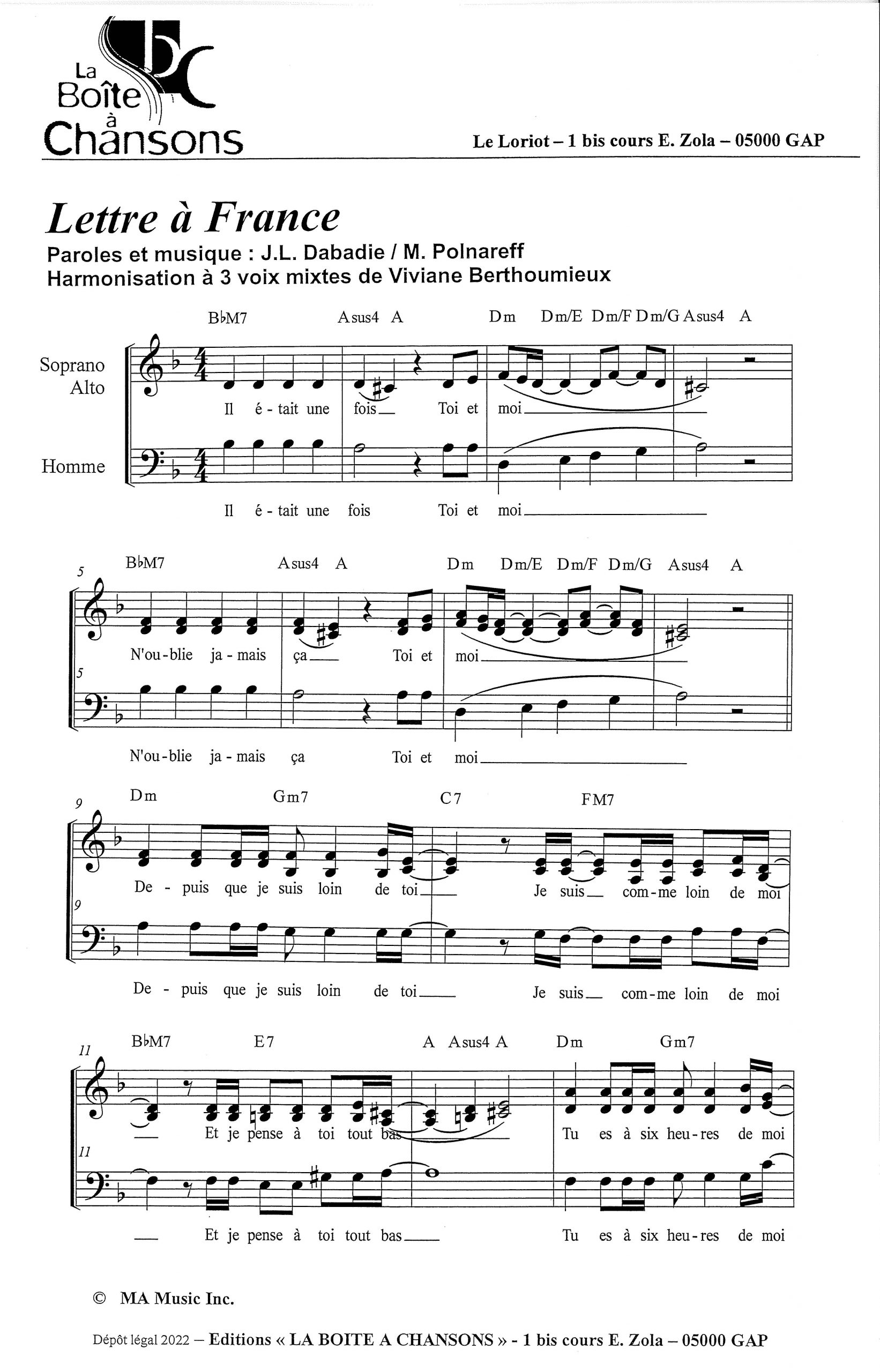 Paroles et musique : JL Dabadie / M. Polnareff Harmonisation : Viviane Berthoumieux
