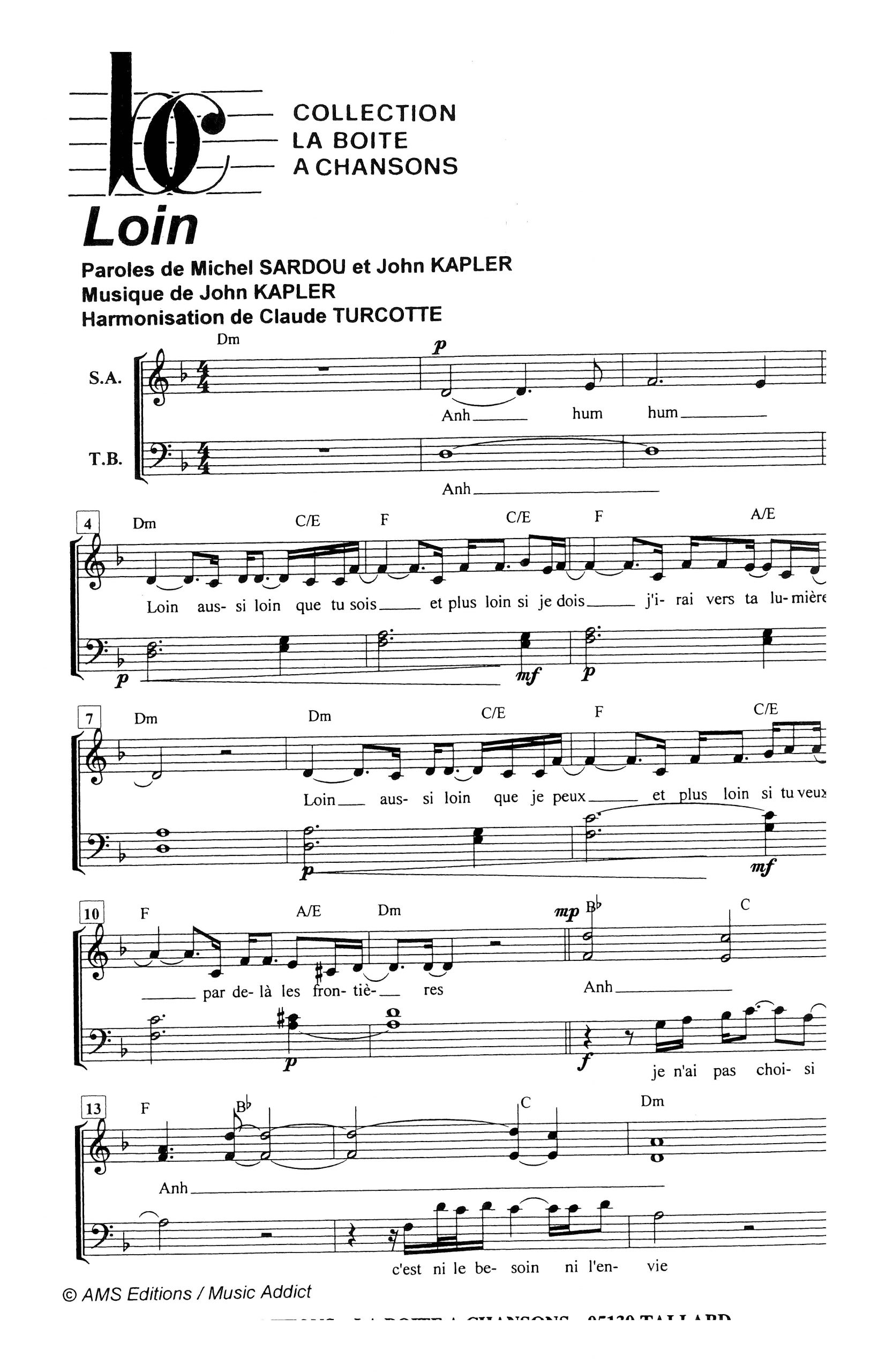 Paroles et musique de SARDOU Harmonisation : Claude TURCOTTE