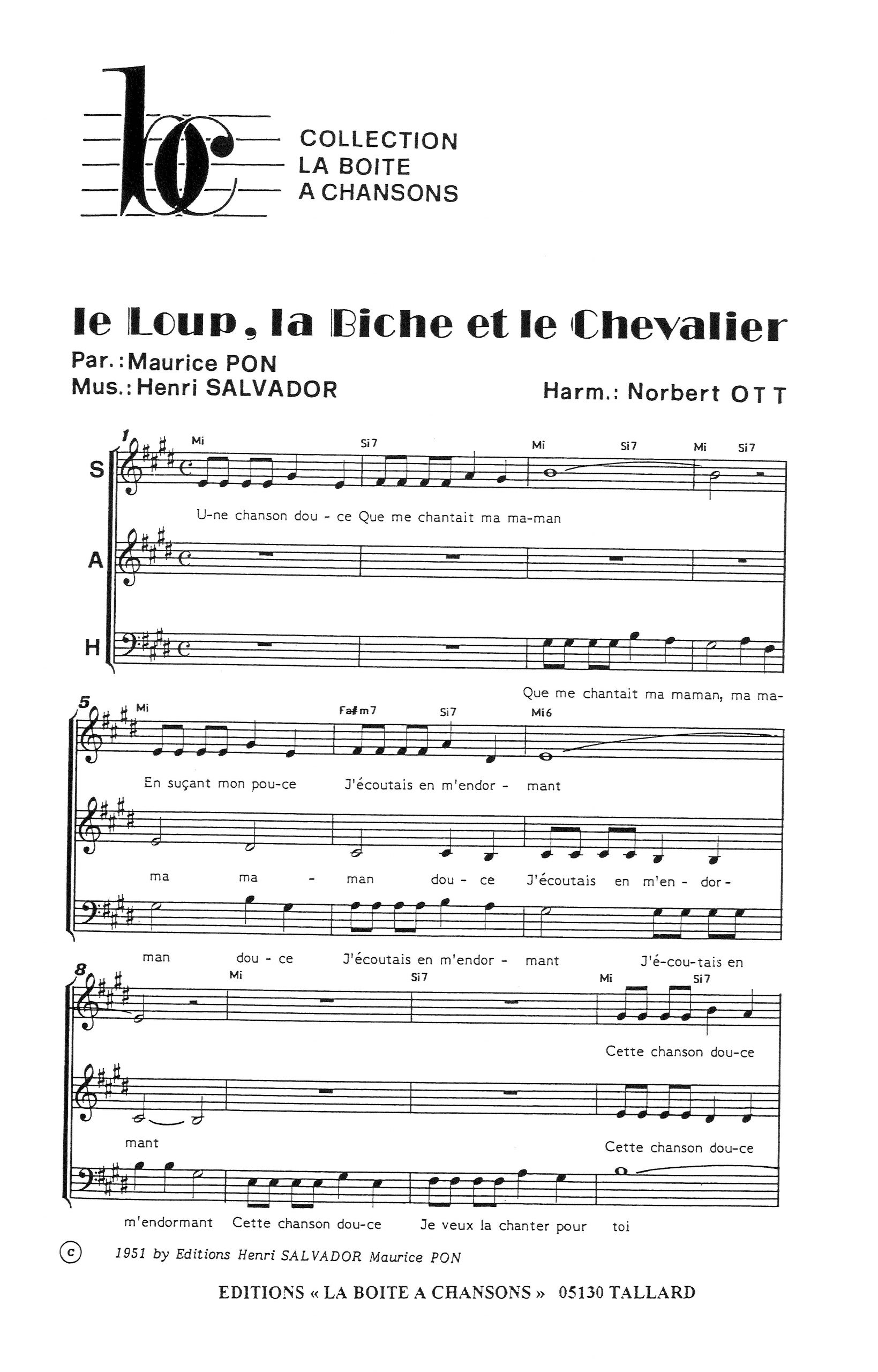 Paroles et musique de PON/SALVADOR Harmonisation : Norbert OTT