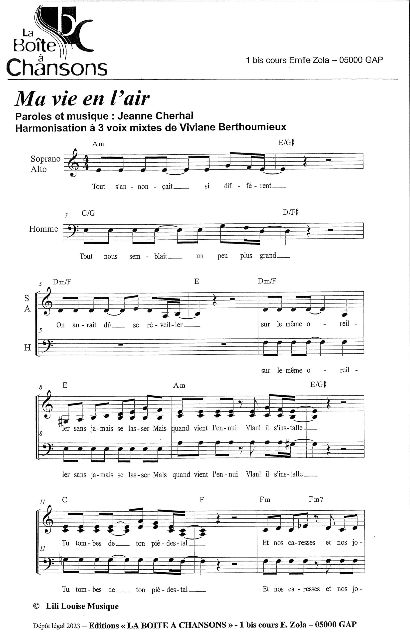 Paroles et musique : Cherhal Harmonisation : Viviane Berthoumieux