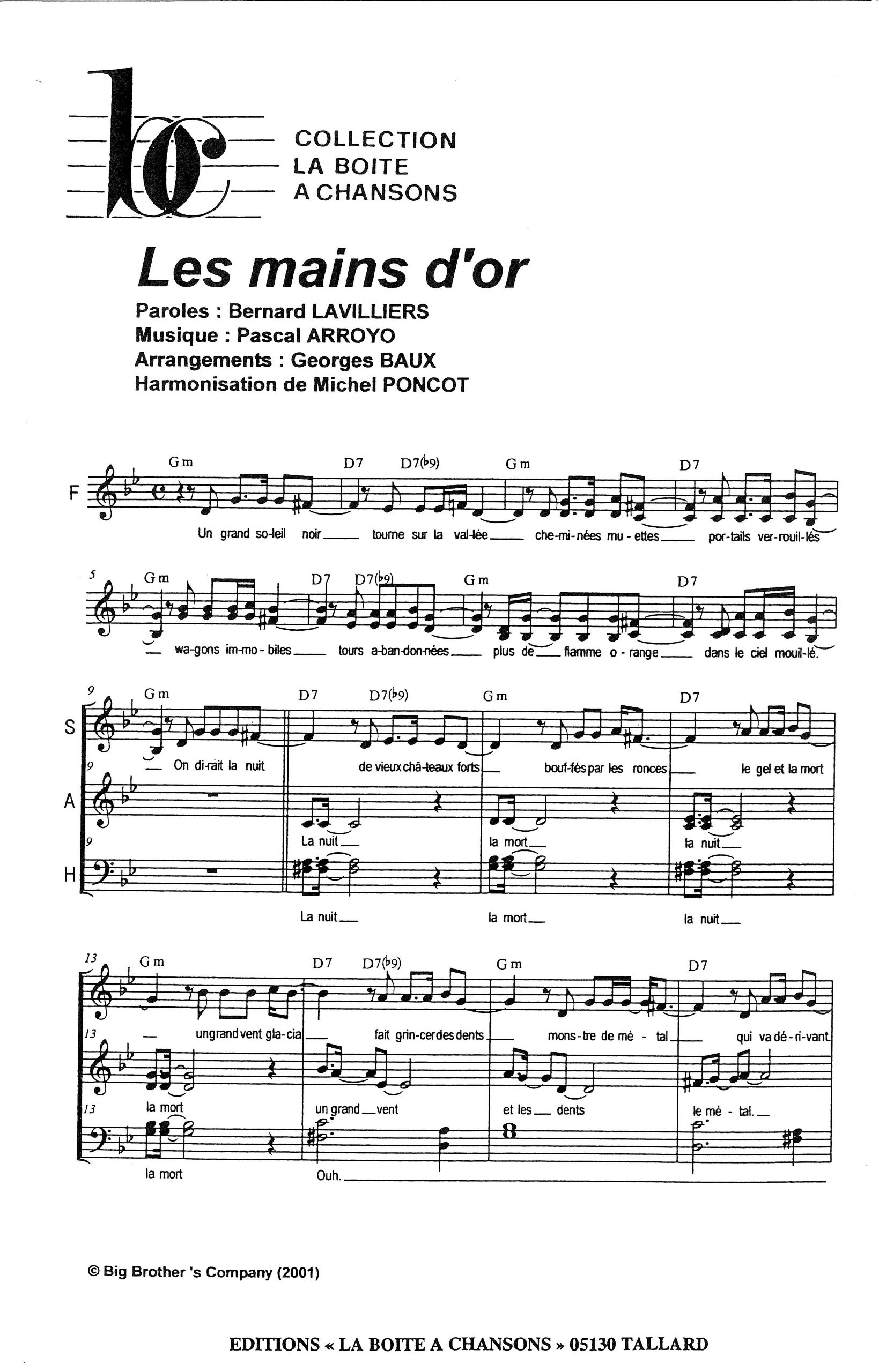 Paroles et musique de LAVILLIERS Harmonisation : Michel PONCOT