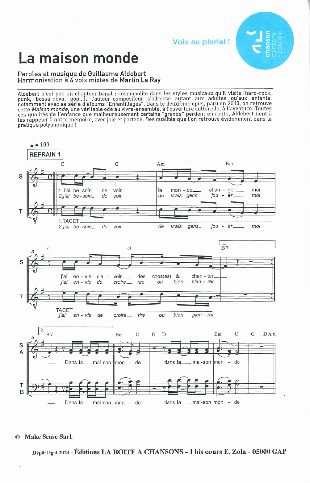 Harmonisation à 4 voix mixtes : Martin Le Ray