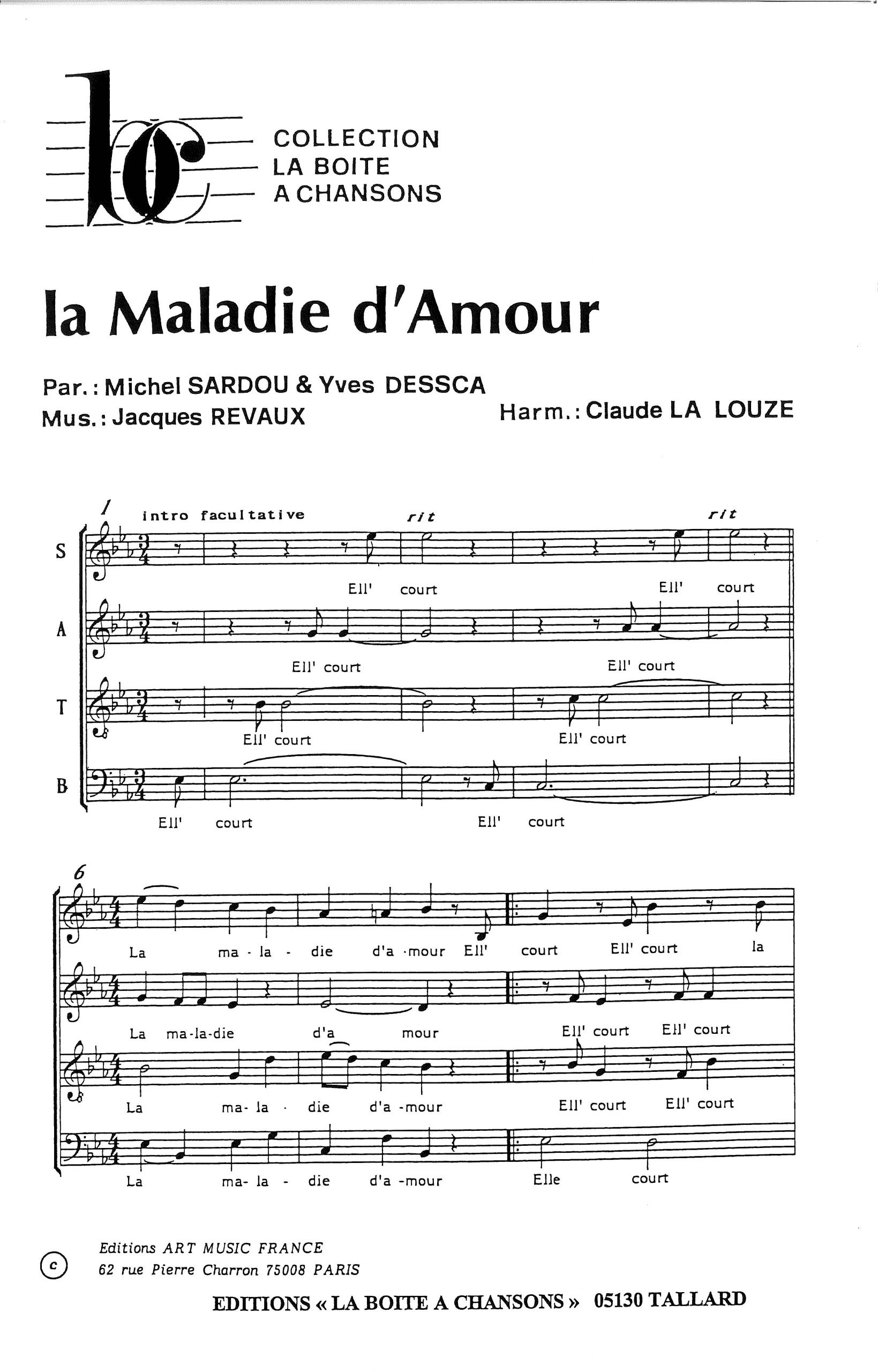 Paroles et musique de SARDOU/DESSCA Harmonisation : LA LOUZE