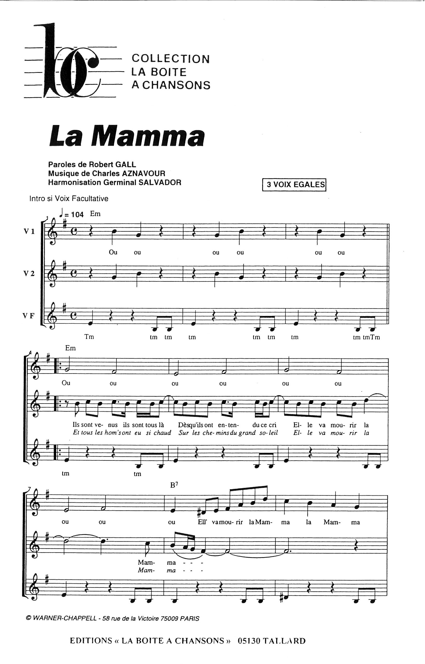 Paroles et musique de GALL/AZNAVOUR Harmonisation : Germinal SALVADOR