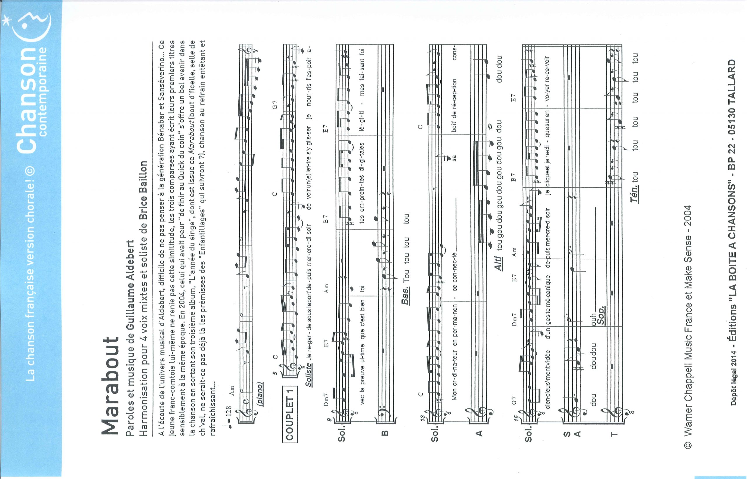 Paroles et musique de ALDEBERT Harmonisation : Brice BAILLON