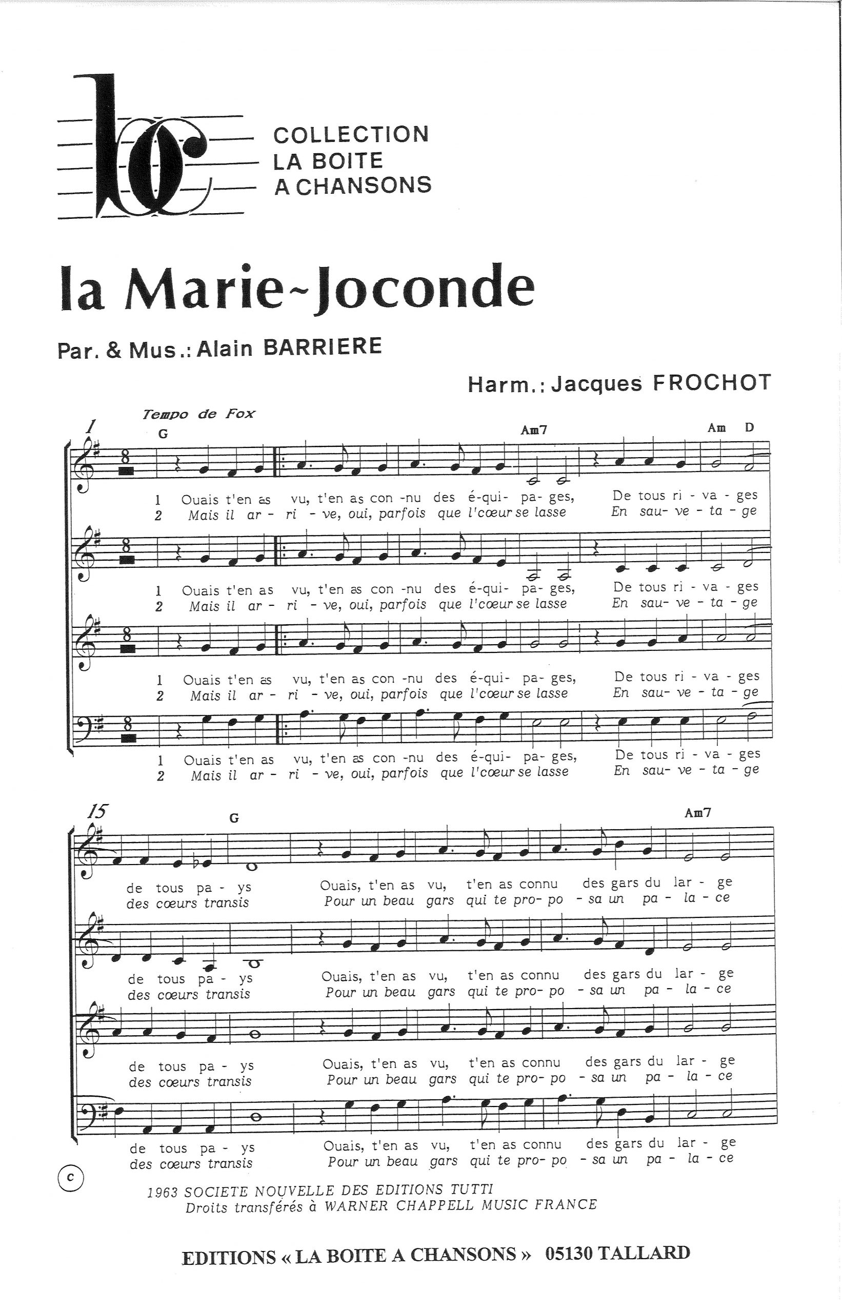 Paroles et musique de BARRIERE Harmonisation : Jacques FROCHOT