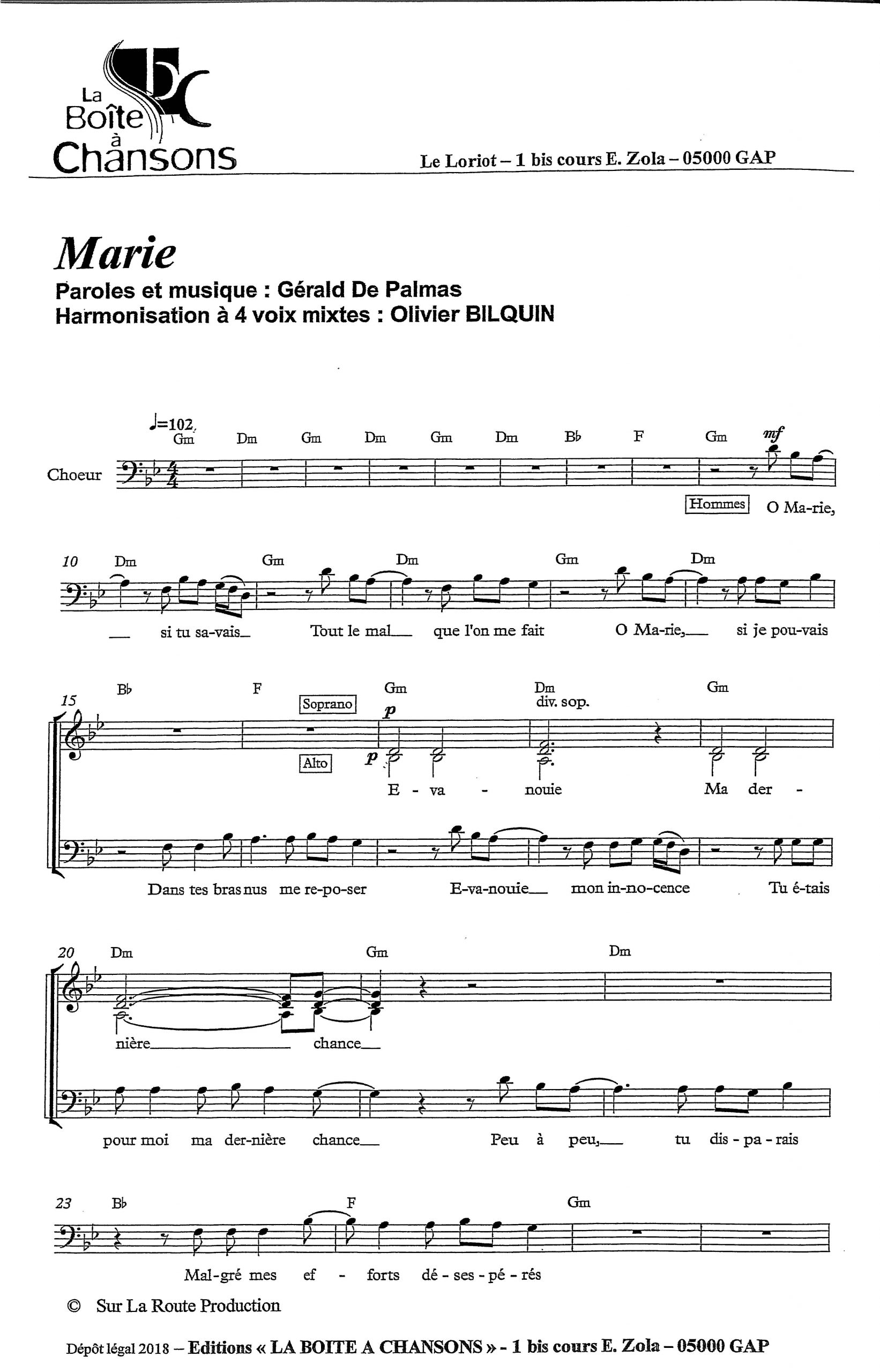 Paroles et musique : G. de Palmas Harmonisation : Olivier Bilquin