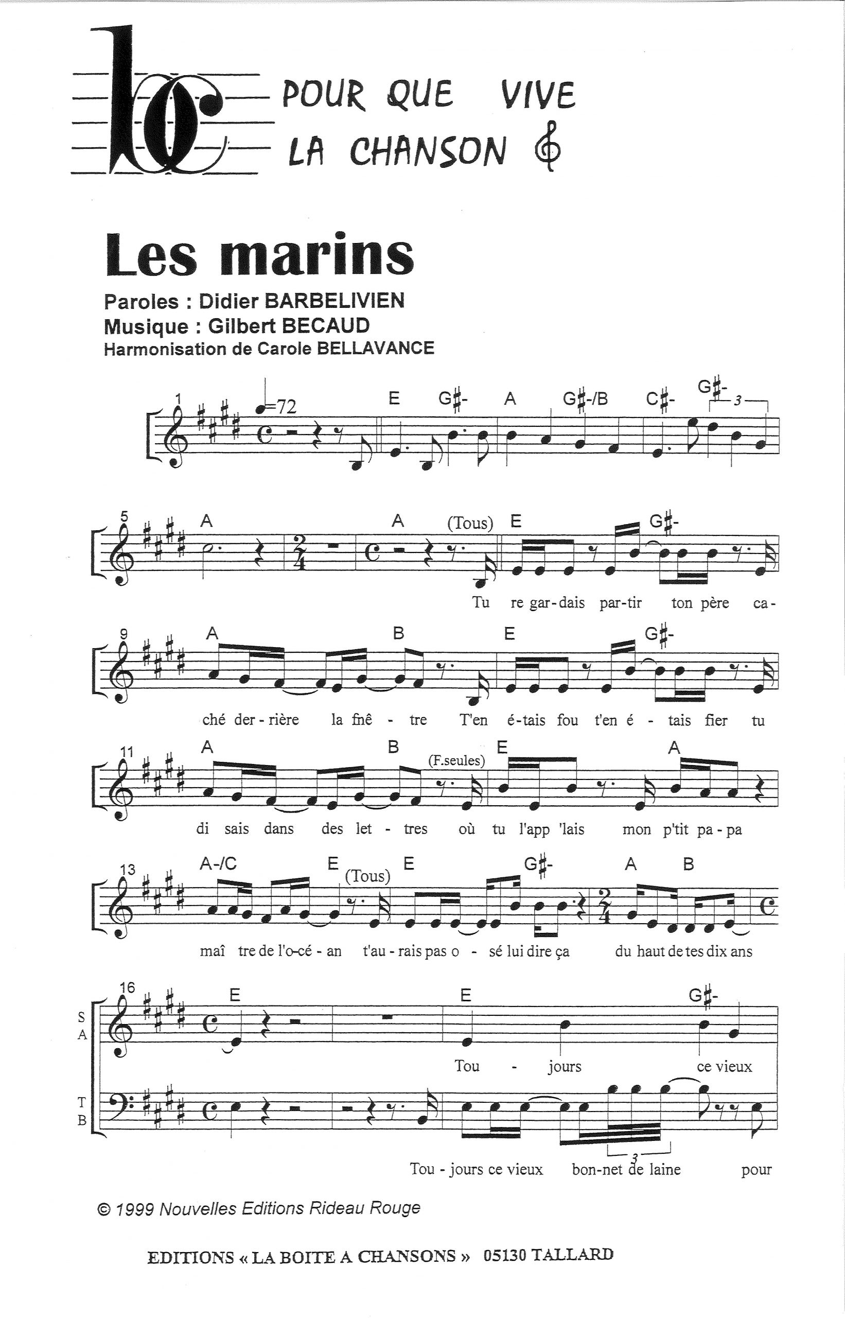Paroles et musique de BECAUD/BARBELIVIEN Harmonisation : Carole BELLAVANCE