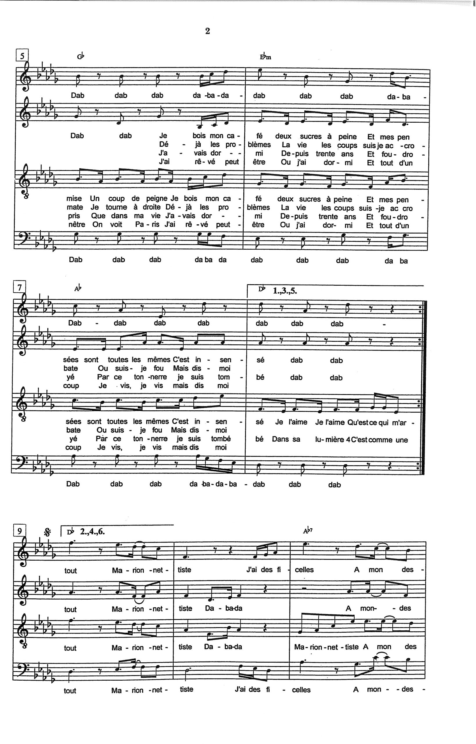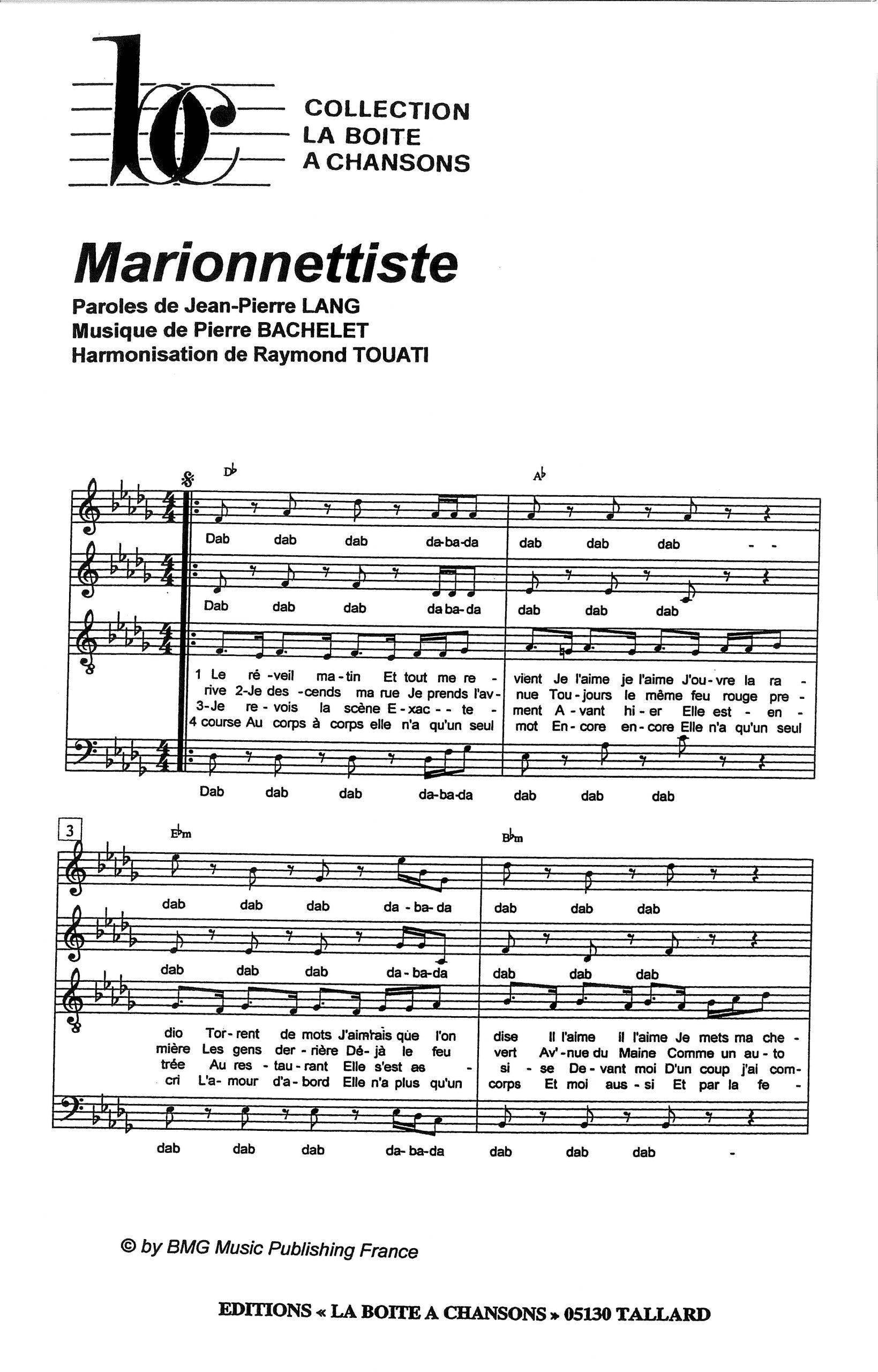 Paroles et musique de LANG/BACHELET Harmonisation : Raymond TOUATI