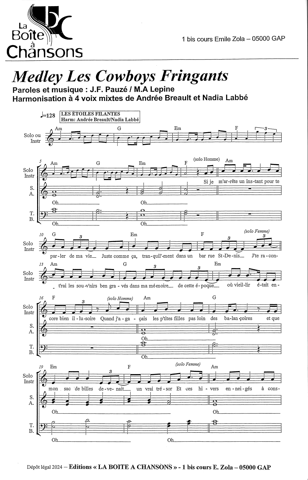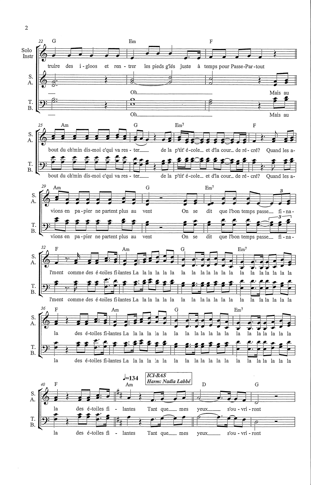 Harmonisation à 4 voix mixtes de Andrée Breault et Nadia Labbé