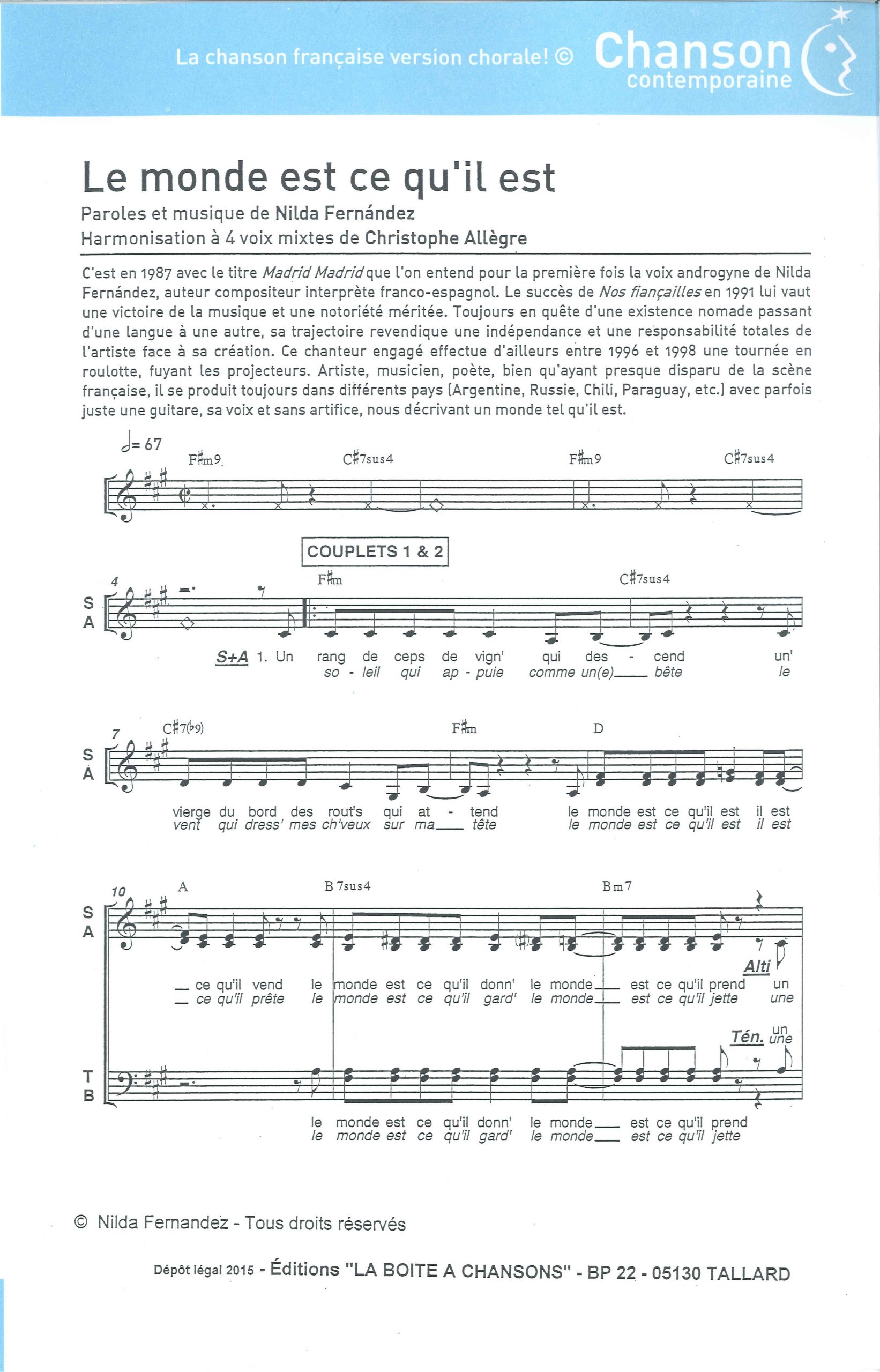 Paroles et musique : N. Fernandez Harmonisation : Christophe ALLEGRE