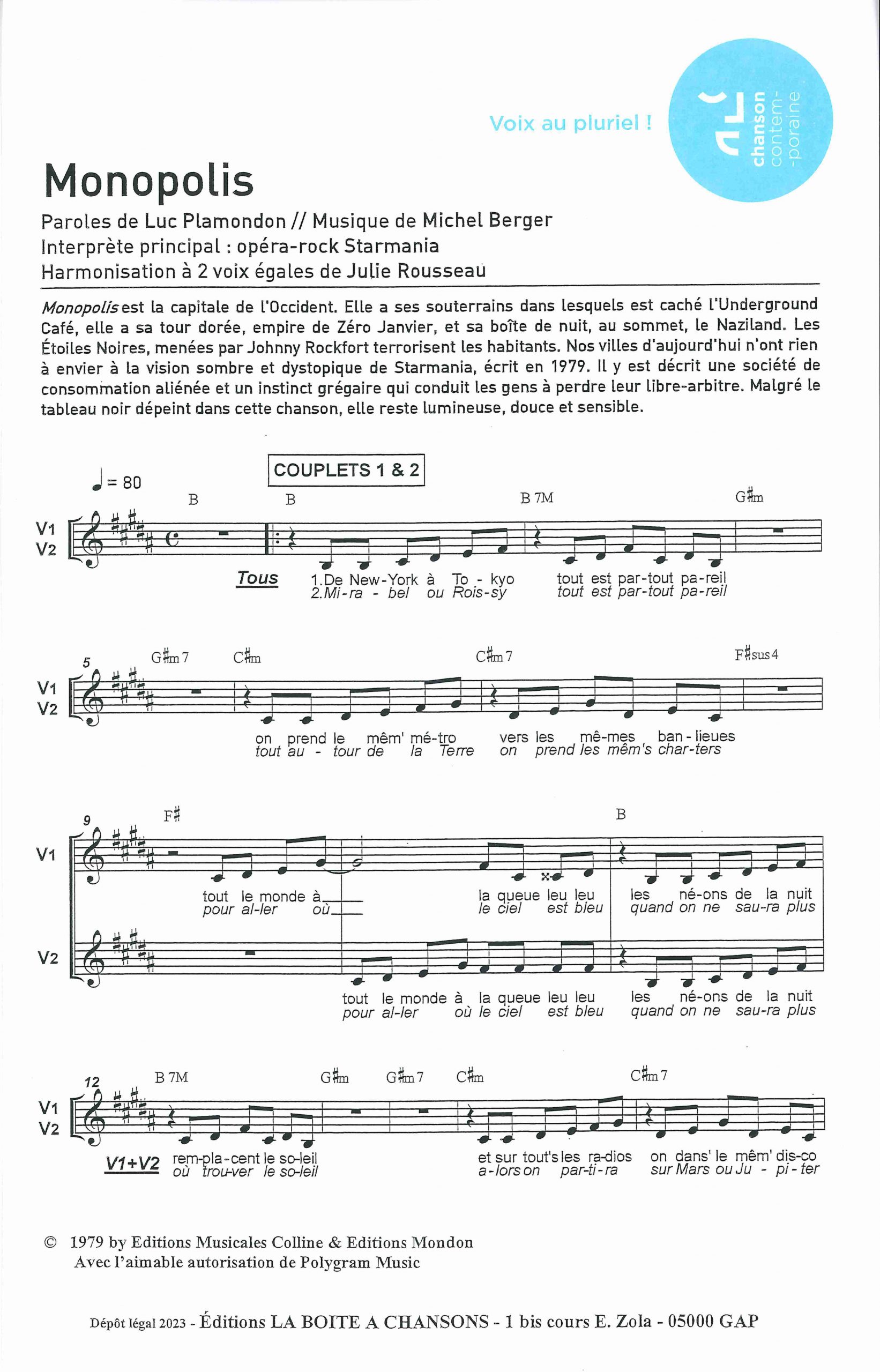 Paroles et musique : Plamondon /Berger Harmonisation : Julie Rousseau