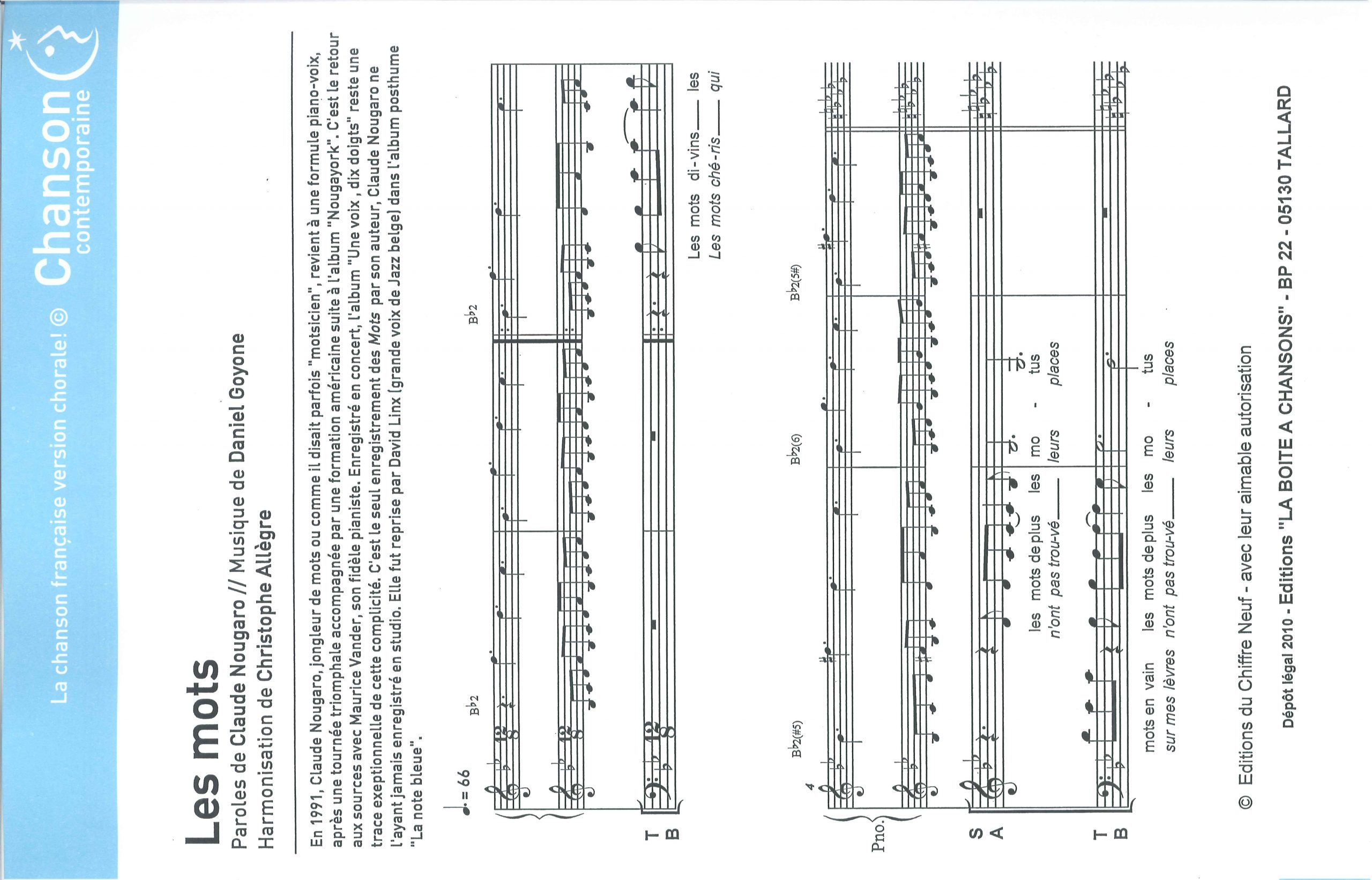 Paroles et musique de NOUGARO/GOYONE Harmonisation : Christophe ALLEGRE