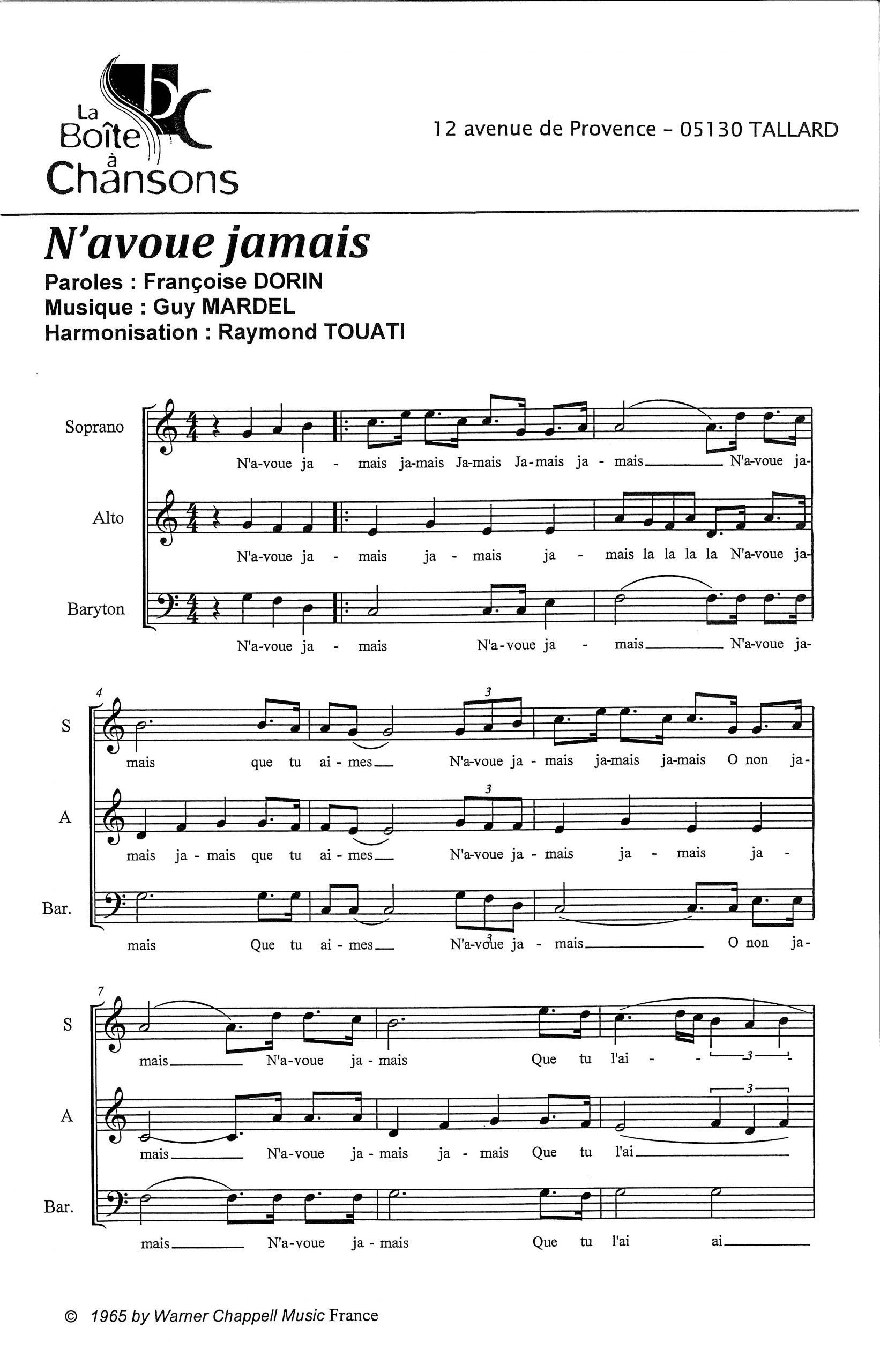 Paroles et musique de DORIN/MARDEL Harmonisation : Raymond TOUATI