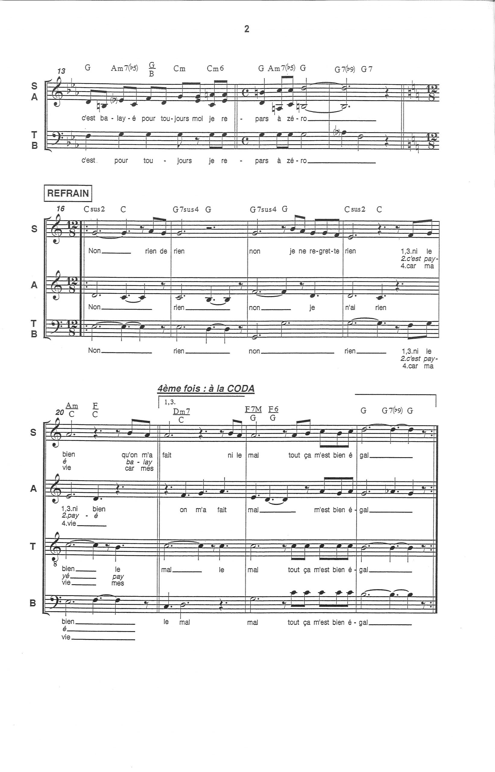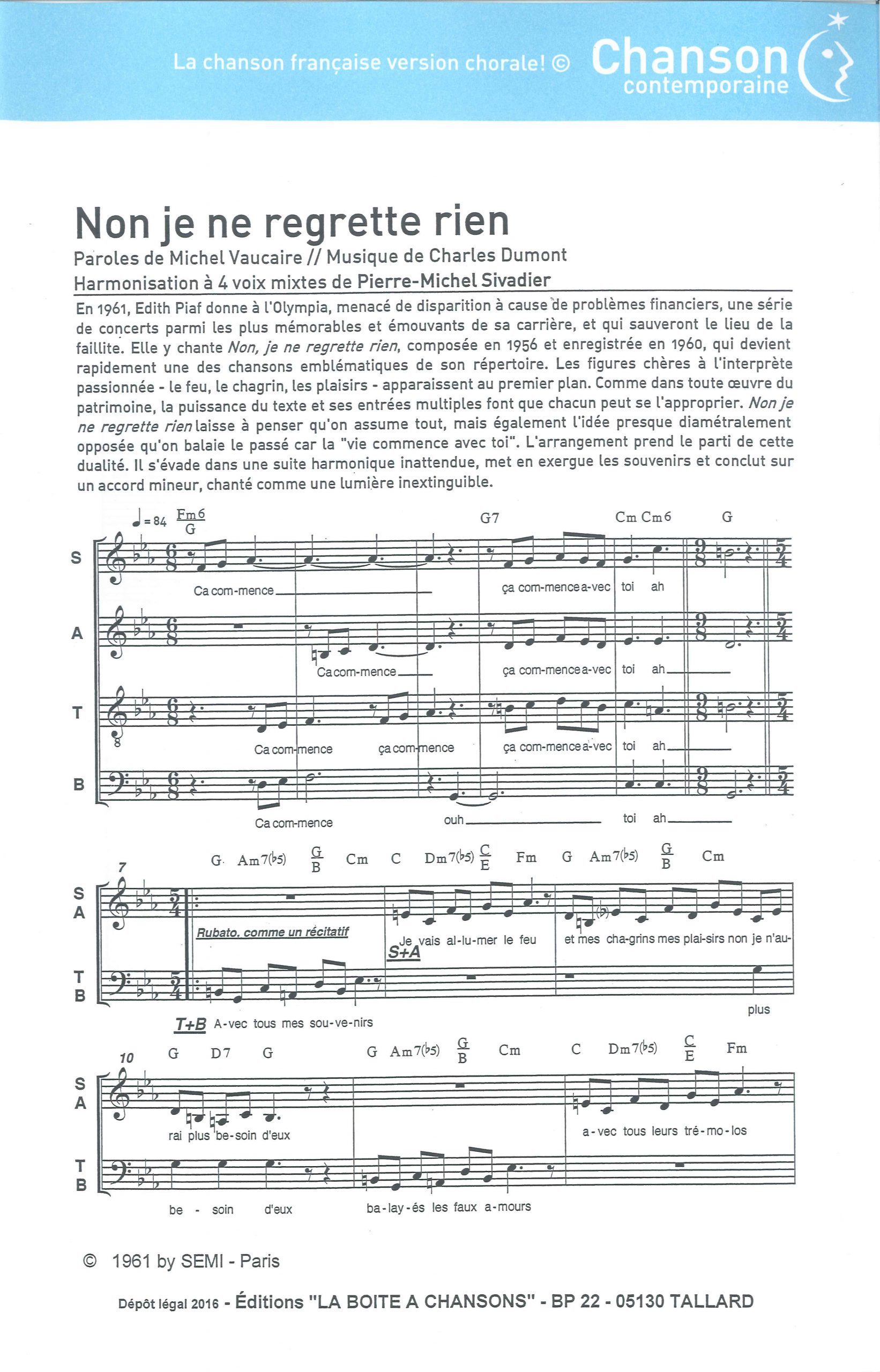 Paroles et musique : M. Vaucaire / C. Dumont Harmonisation : Pierre Michel SIVADIER