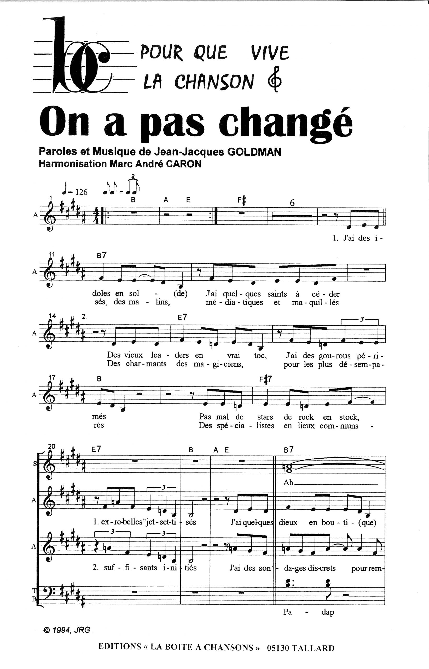 Paroles et musique de GOLDMAN Harmonisation : Marc André CARON