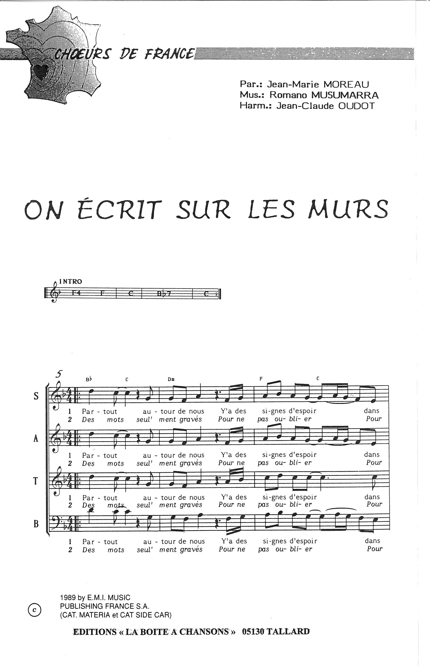 Paroles et musique de MOREAU/MUSUMARRA Harmonisation : Jean Claude OUDOT