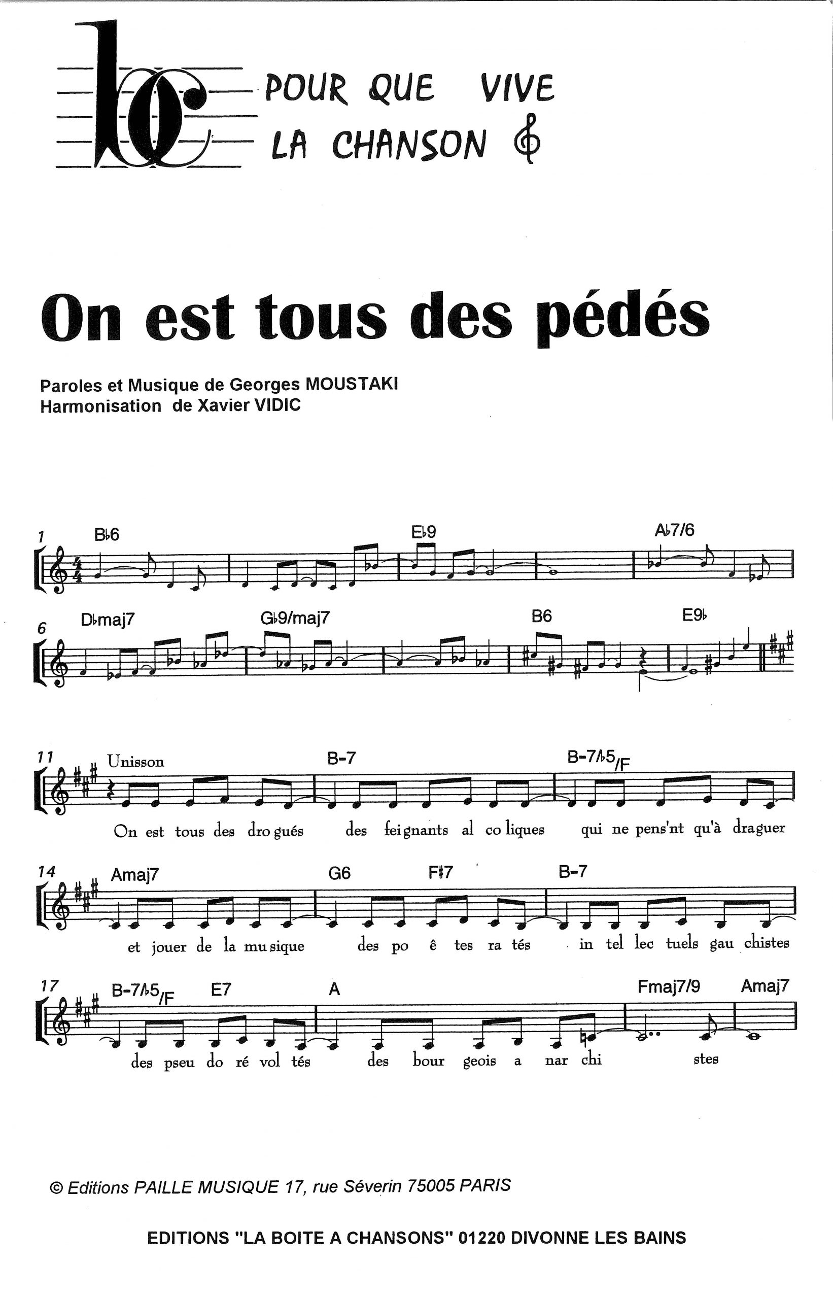 Paroles et musique de MOUSTAKI Harmonisation : Xavier VIDIC