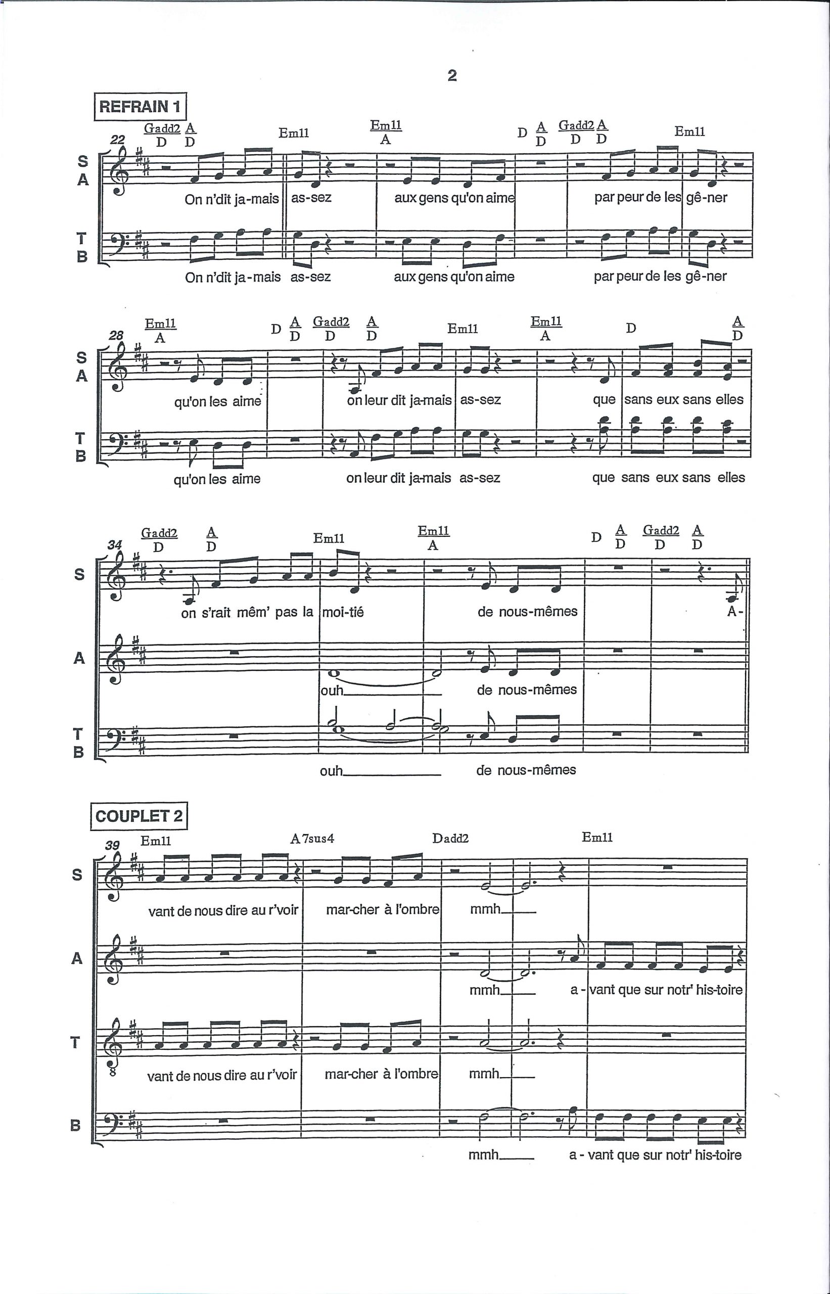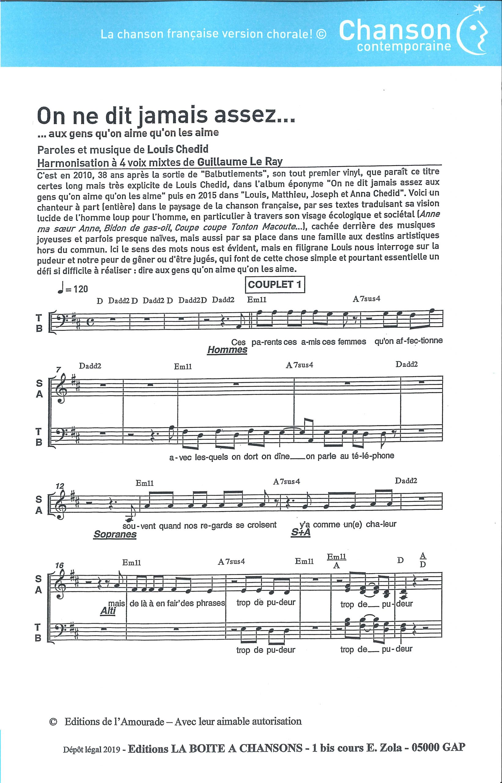 Paroles et musique : L. Chedid Harmonisation : Guillaume Le Ray