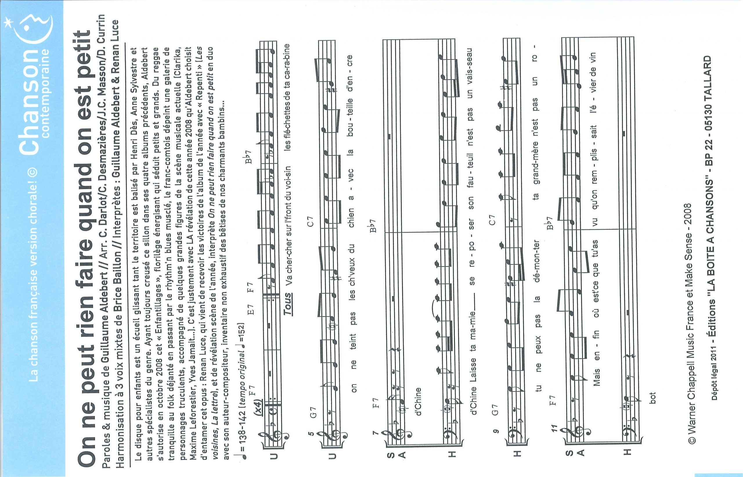 Paroles et musique de ALDEBERT Harmonisation : Brice BAILLON