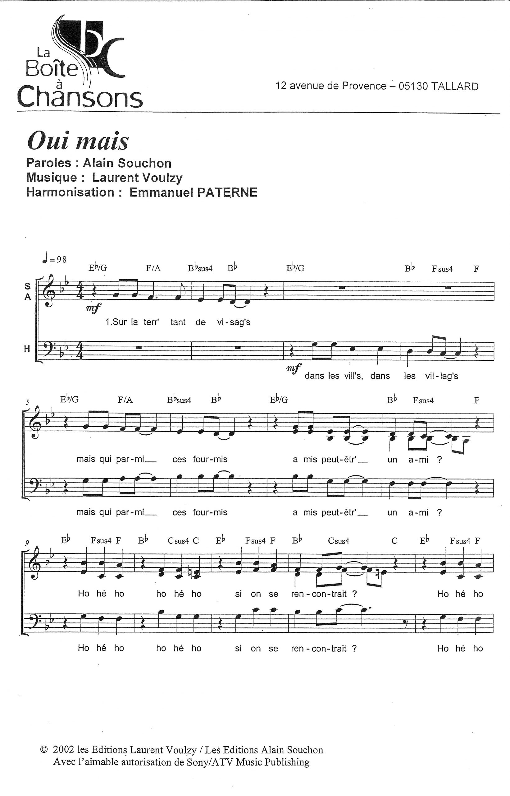 Paroles et musique : A.Souchon / L. Voulzy Harmonisation : Emmanuel PATERNE
