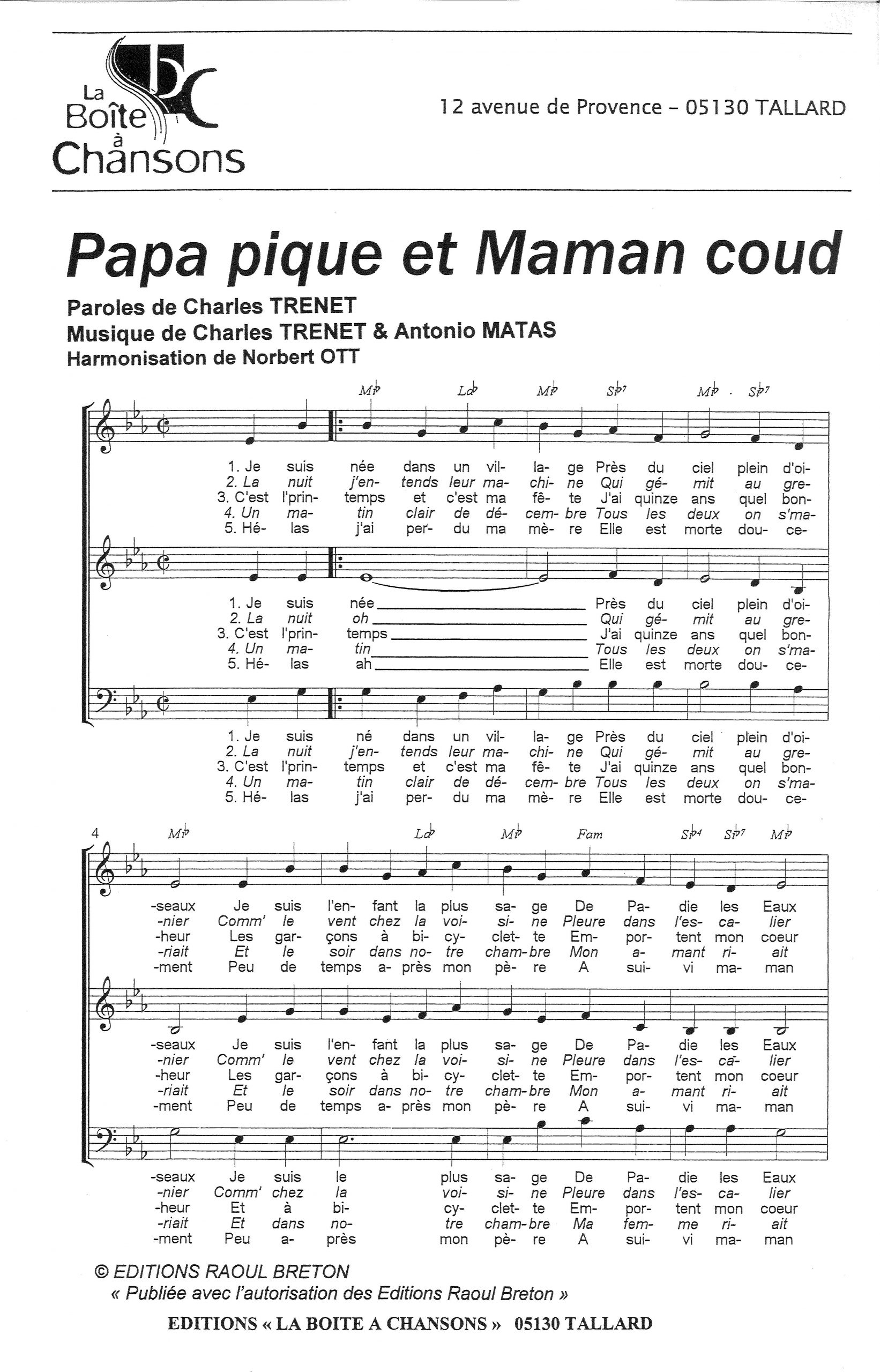 Paroles et musique de TRENET/MATAS Harmonisation : Norbert OTT