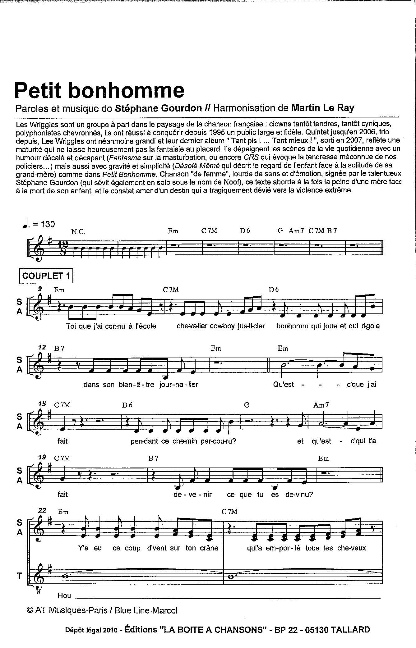 Paroles et musique de GOURDON (Wriggles) Harmonisation : Martin LE RAY