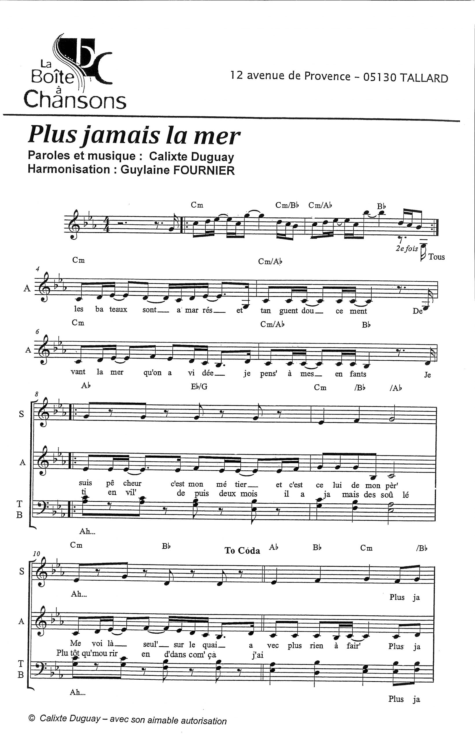Paroles et musique de DUGUAY Harmonisation : Guylaine FOURNIER