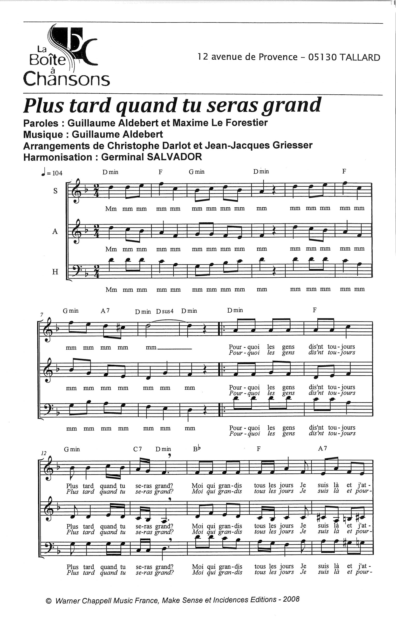 Paroles et musique de ALDEBERT Harmonisation : Germinal SALVADOR