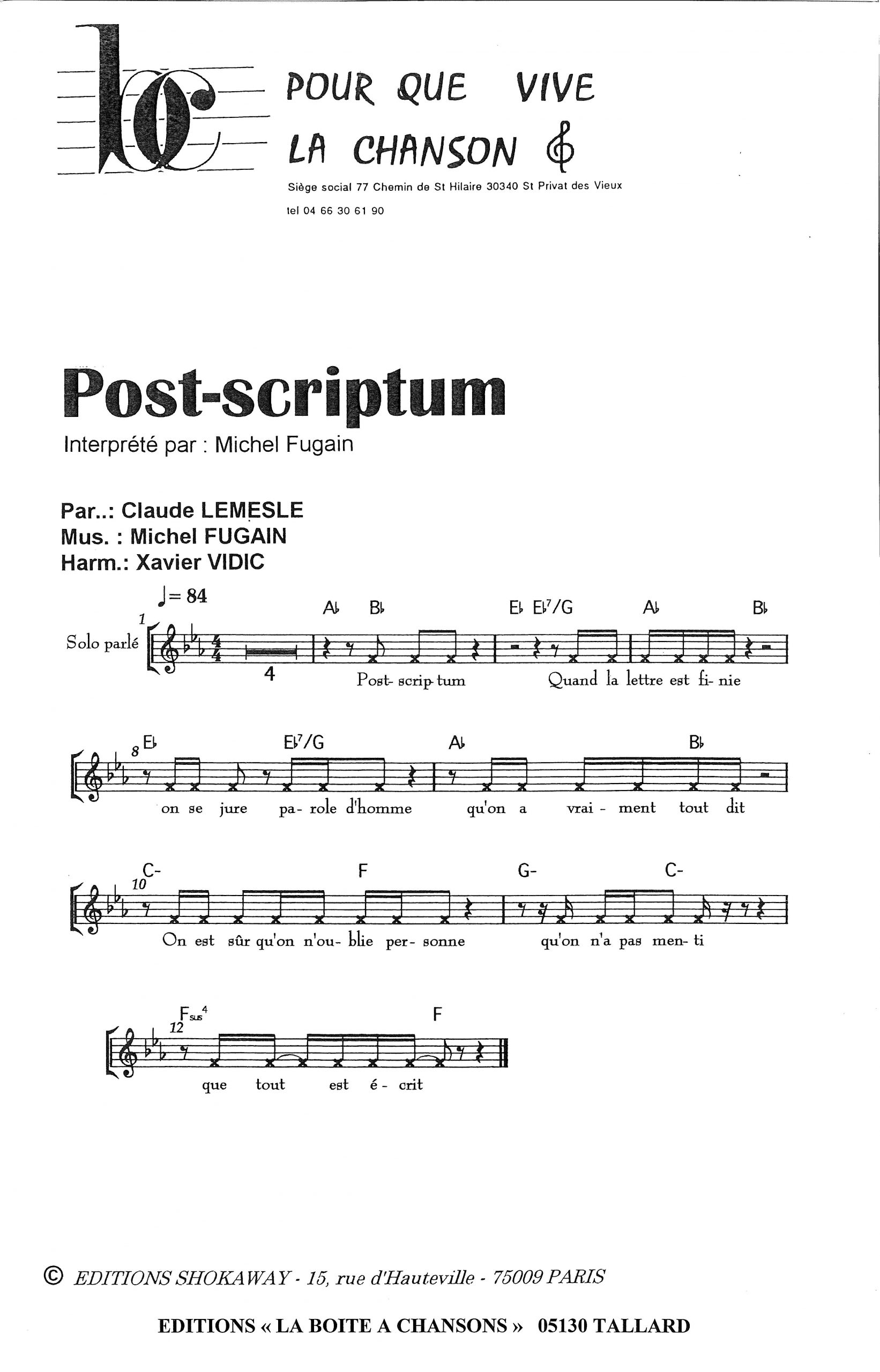 Paroles et musique de LEMESLE/FUGAIN Harmonisation : Xavier VIDIC