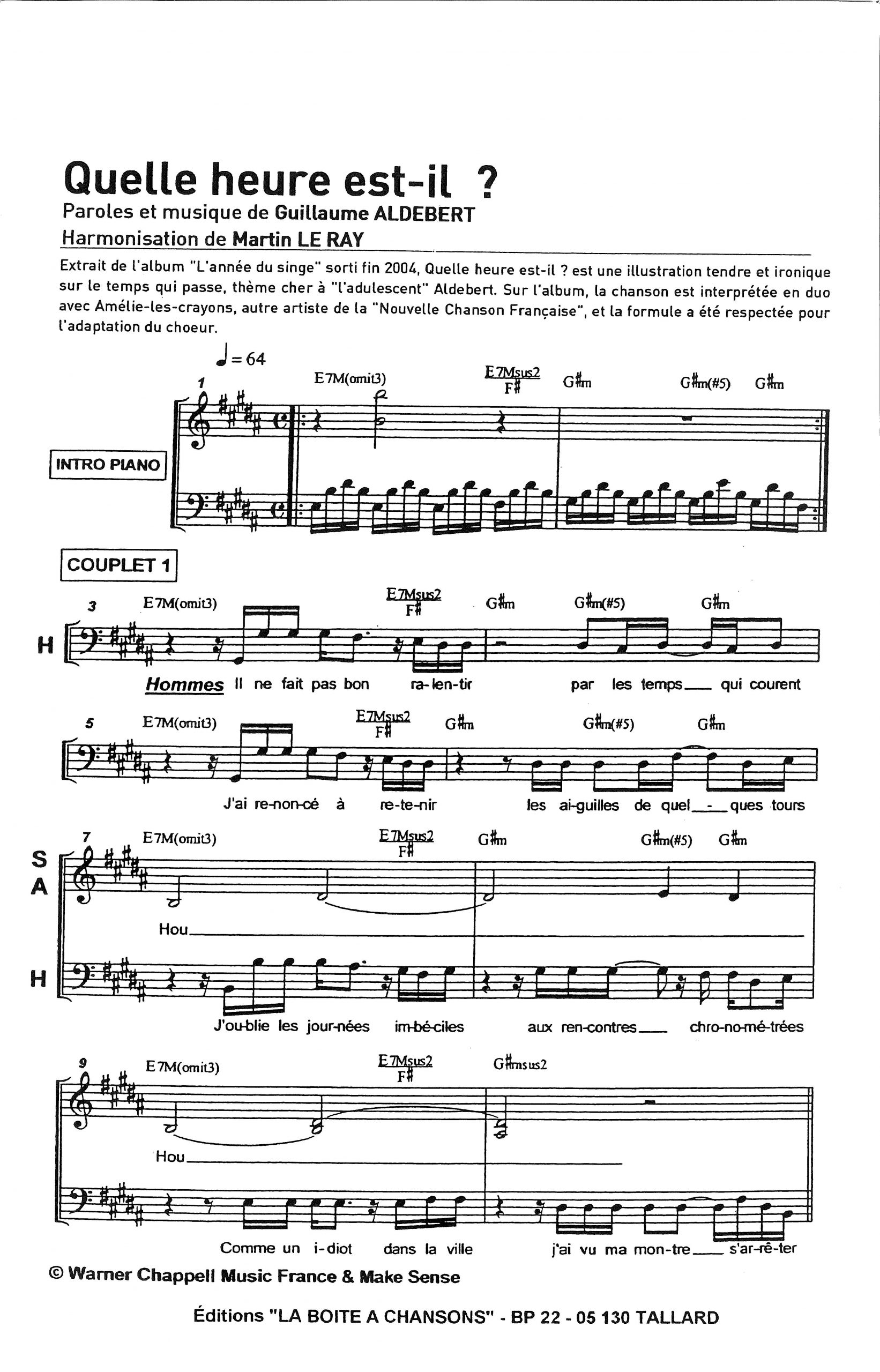 Paroles et musique de ALDEBERT Harmonisation : Martin LE RAY