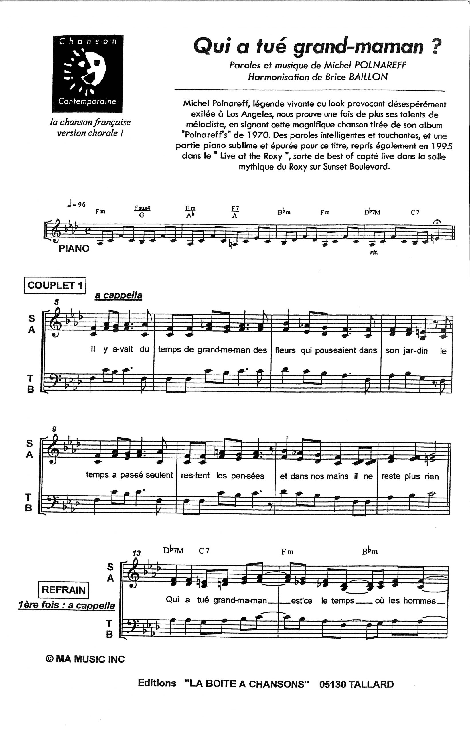 Paroles et musique de POLNAREFF Harmonisation : Brice BAILLON