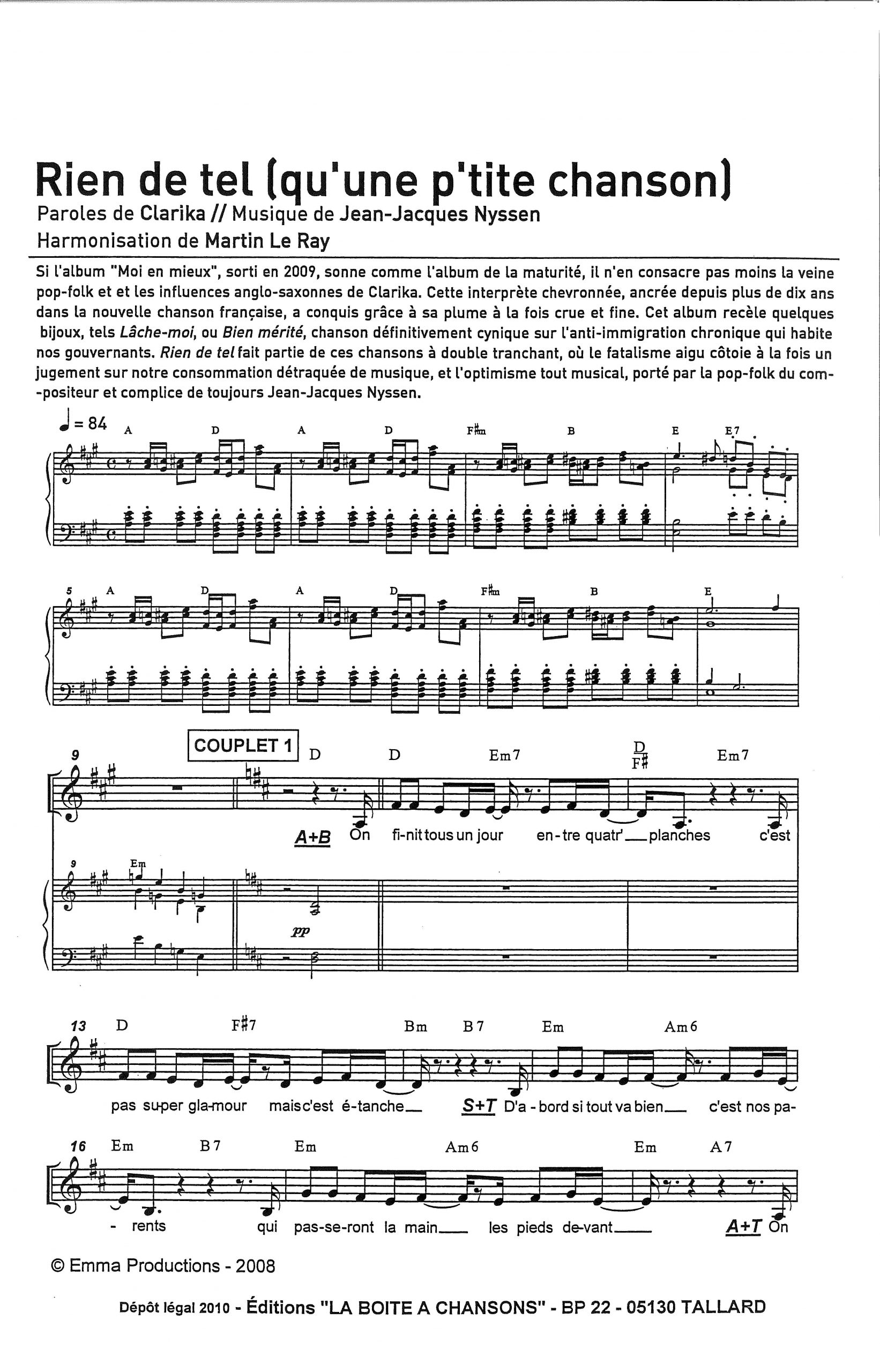 Paroles et musique de CLARIKA Harmonisation : Martin LE RAY
