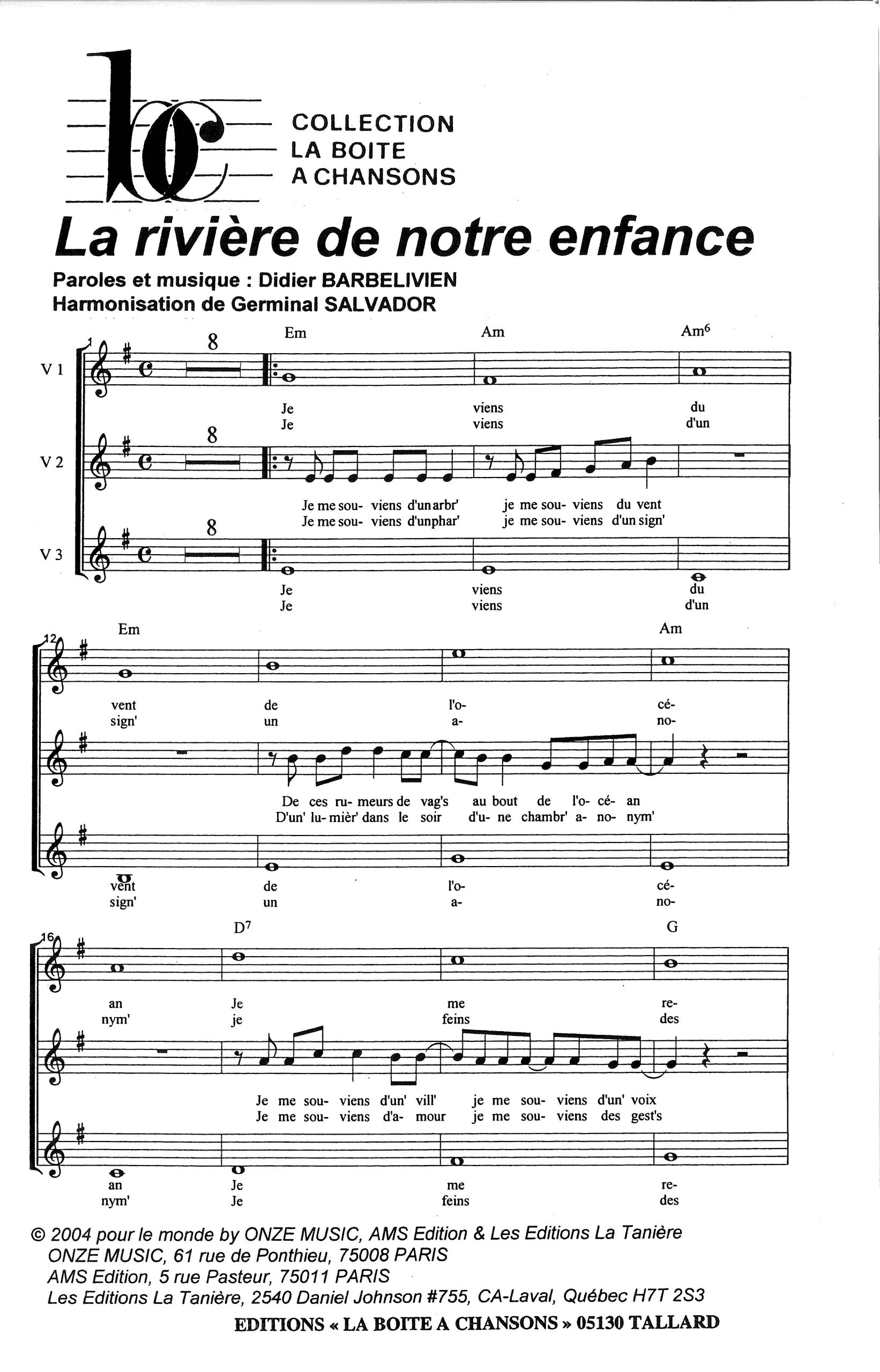 Paroles et musique de BARBELIVIEN Harmonisation : Germinal SALVADOR
