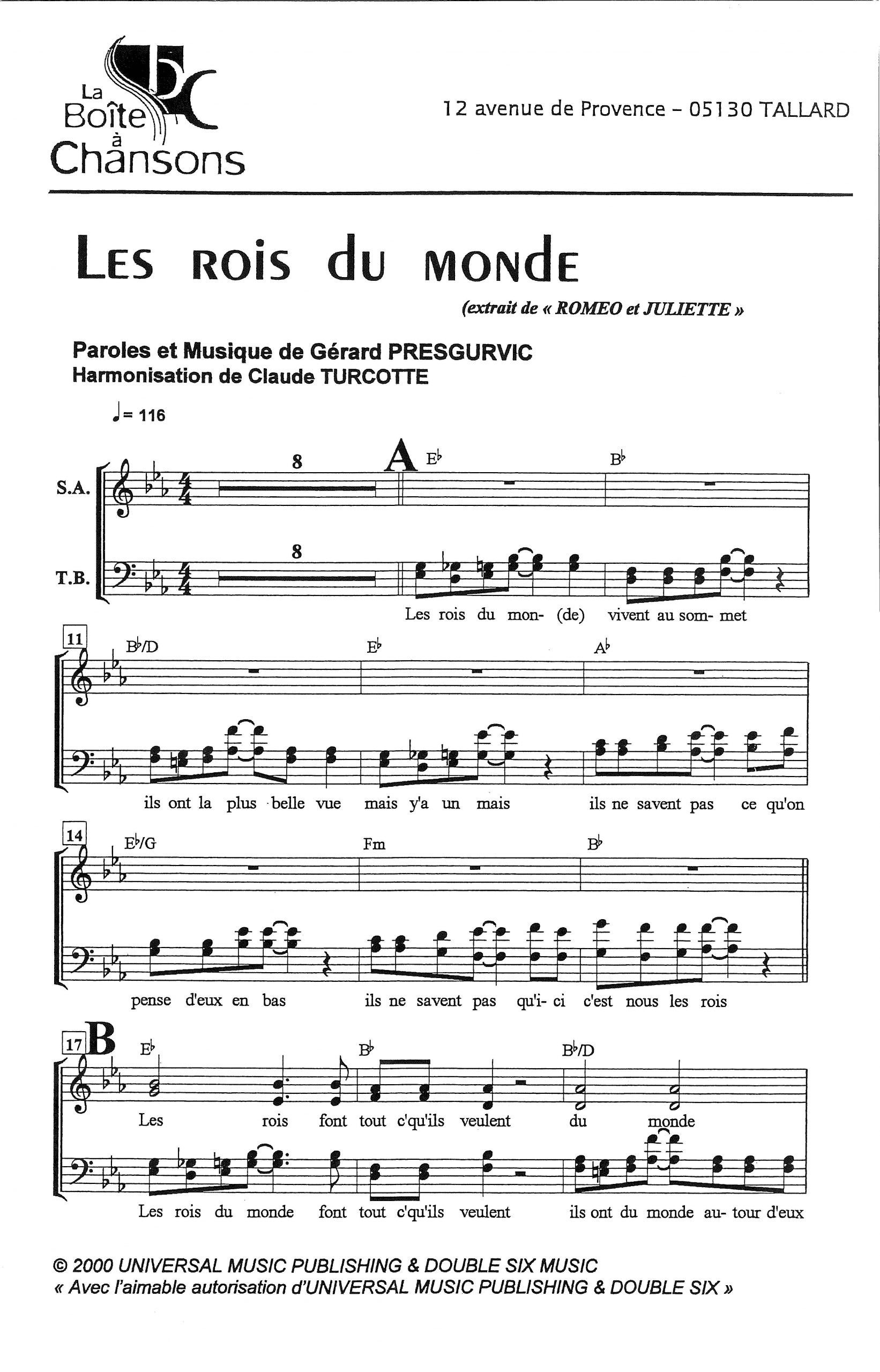 Paroles et musique de PRESGURVIC Harmonisation : Claude TURCOTTE
