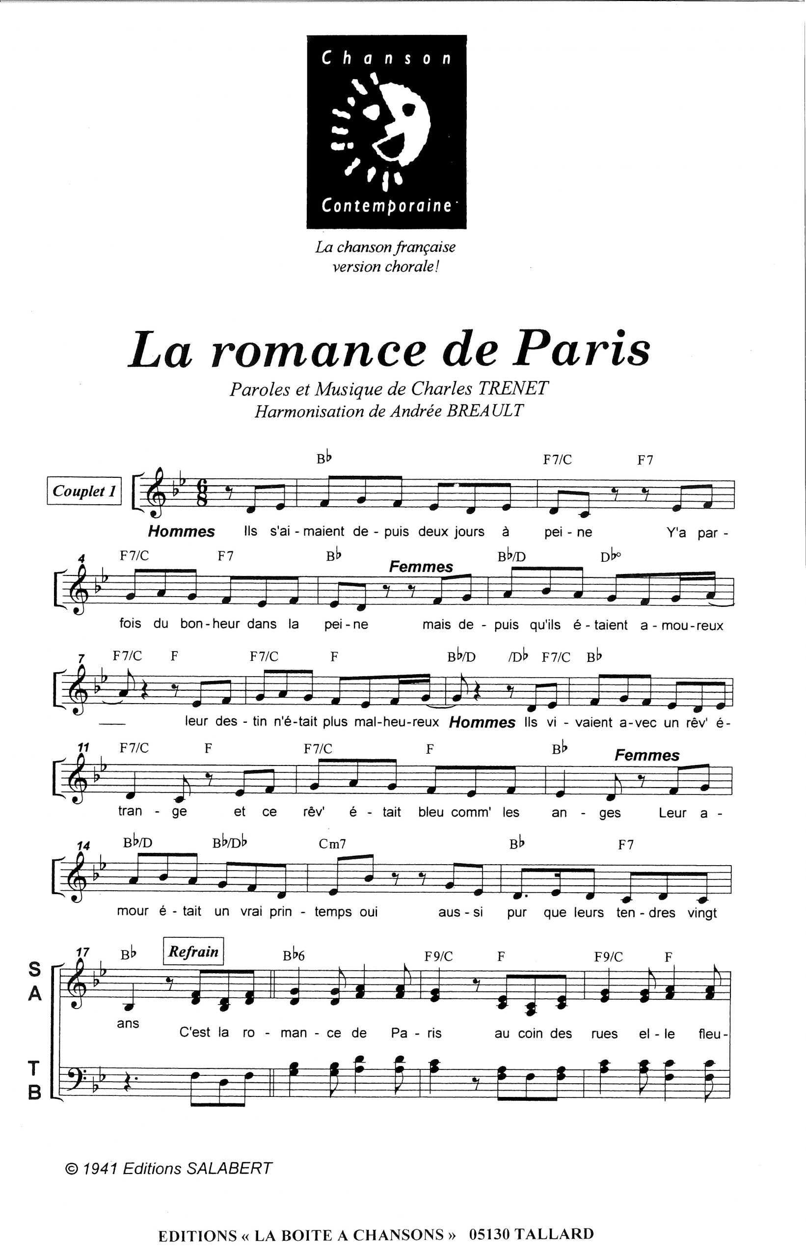Paroles et musique de TRENET Harmonisation : Andrée BREAULT