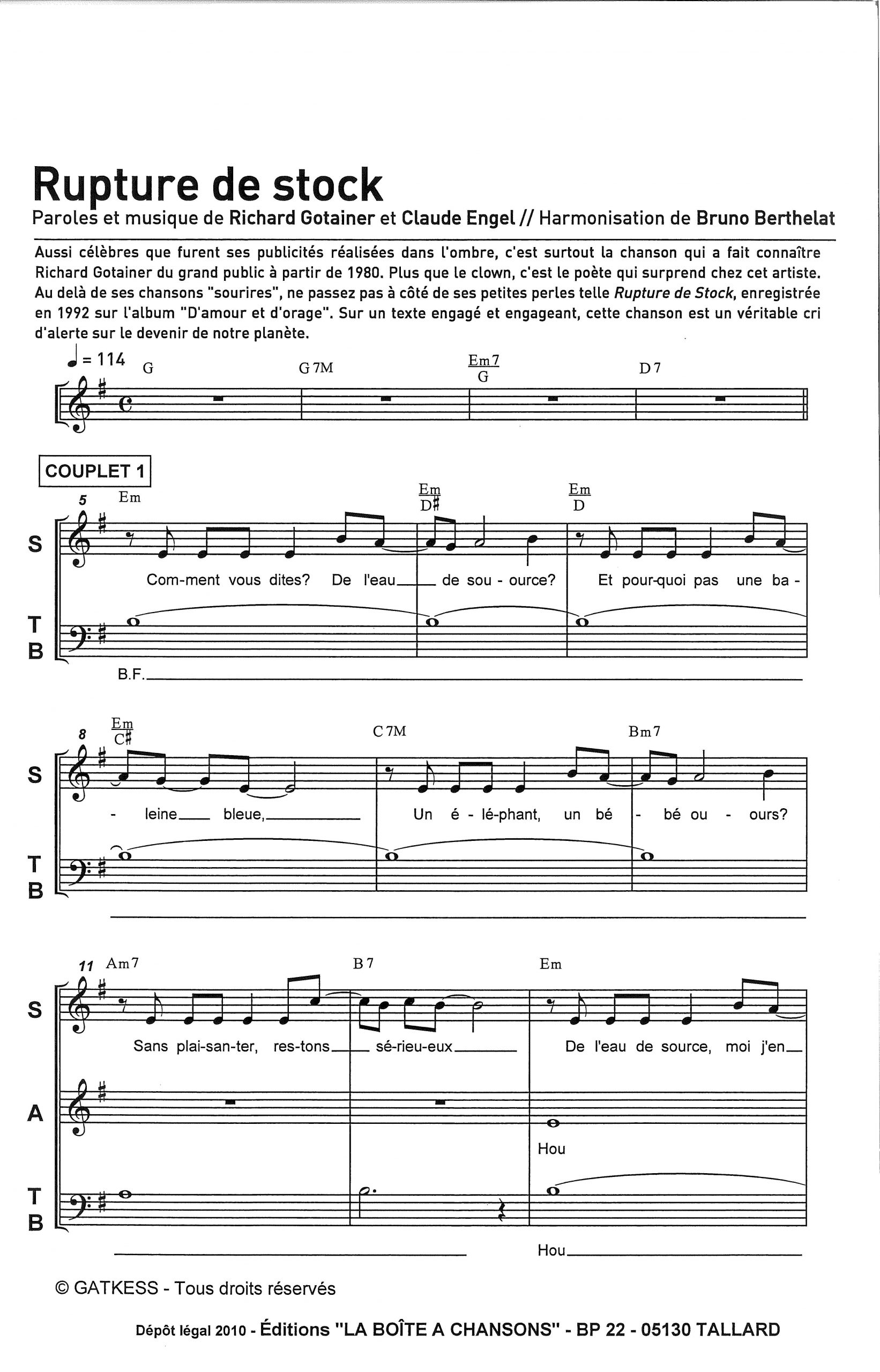 Paroles et musique de GOTAINER/ENGEL Harmonisation : BERTHELAT