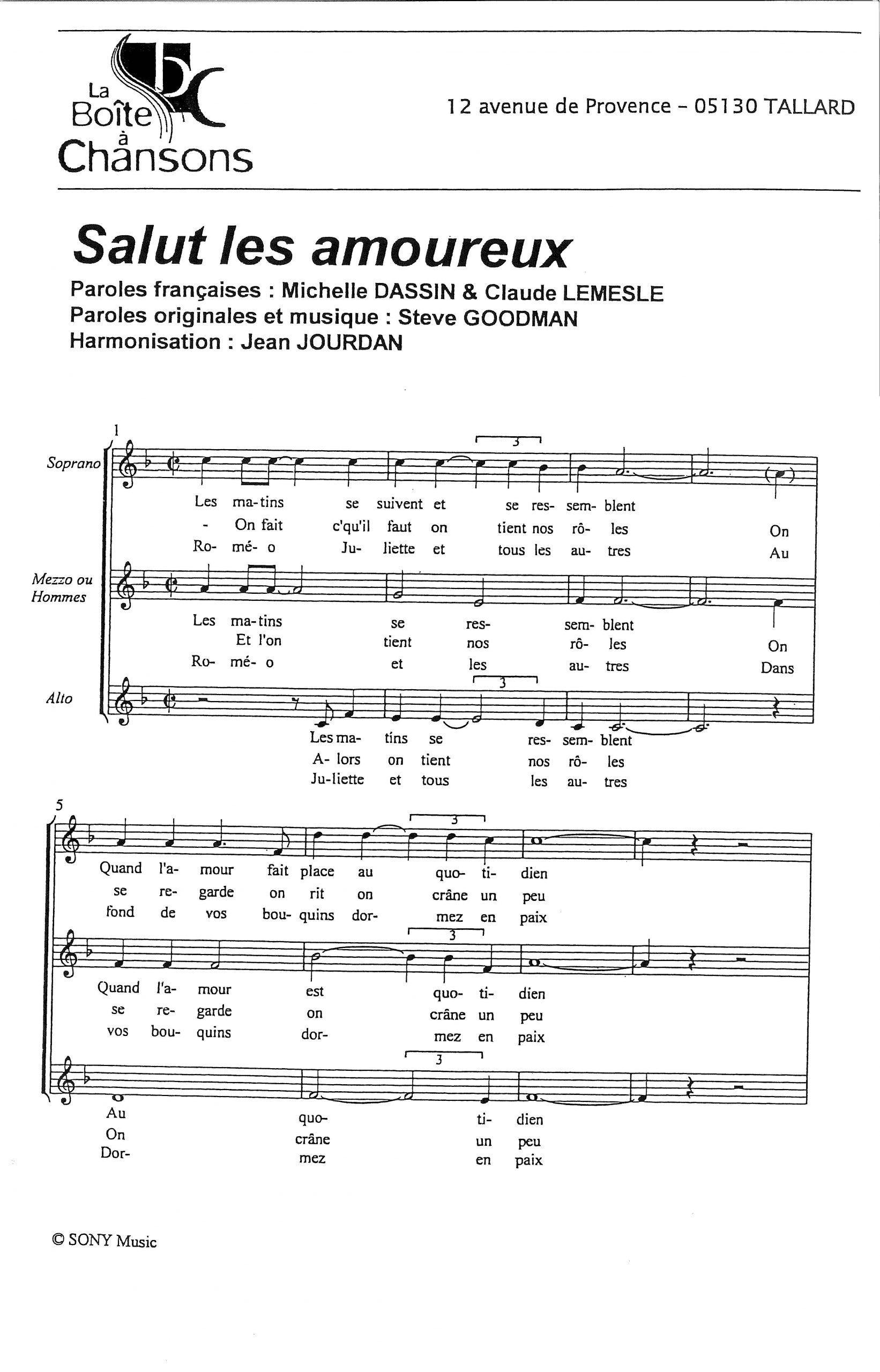 Paroles et musique de DELANOE / DASSIN Harmonisation : Jean JOURDAN