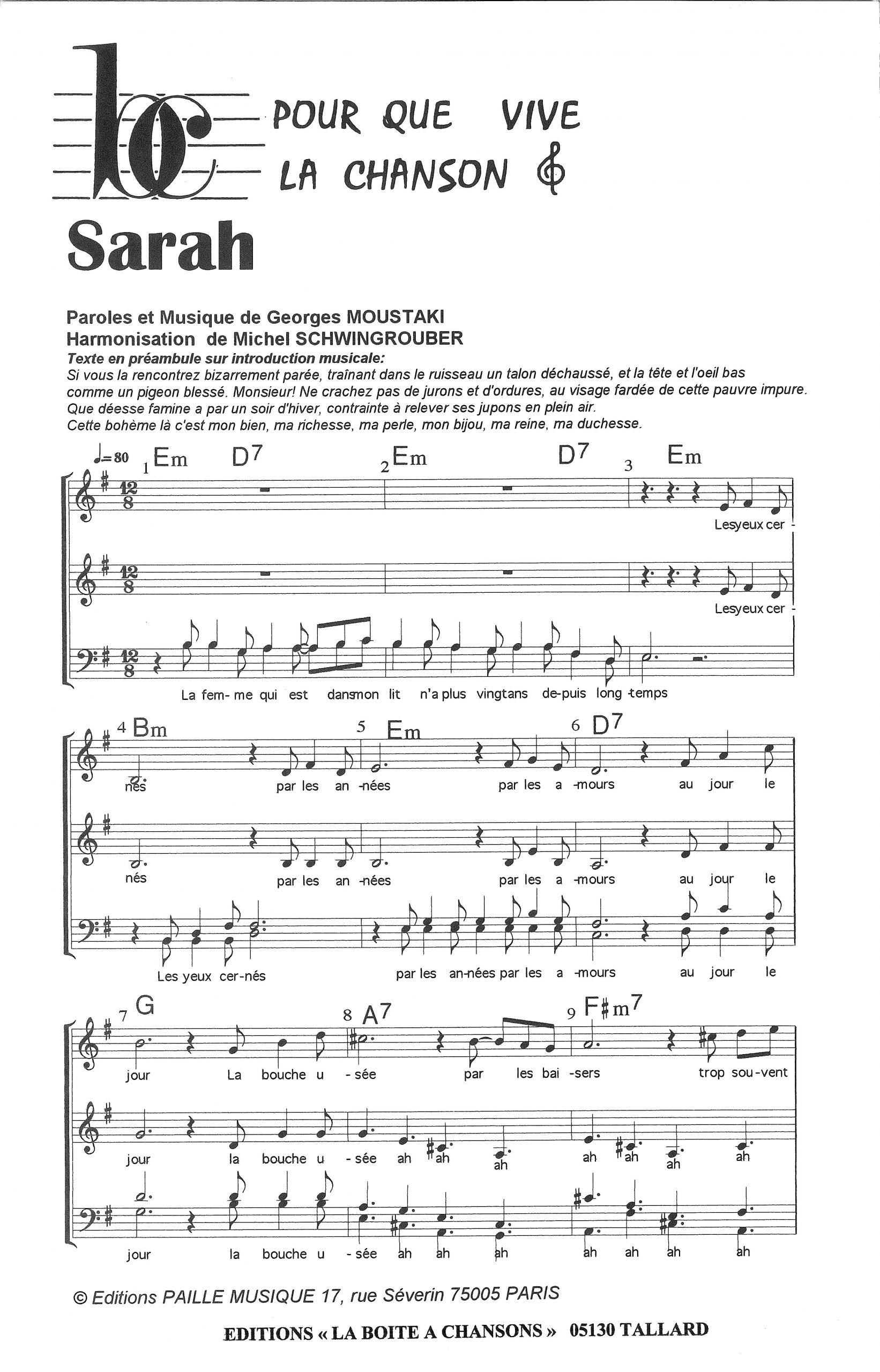 Paroles et musique de MOUSTAKI Harmonisation : Michel SCHWINGROUBER