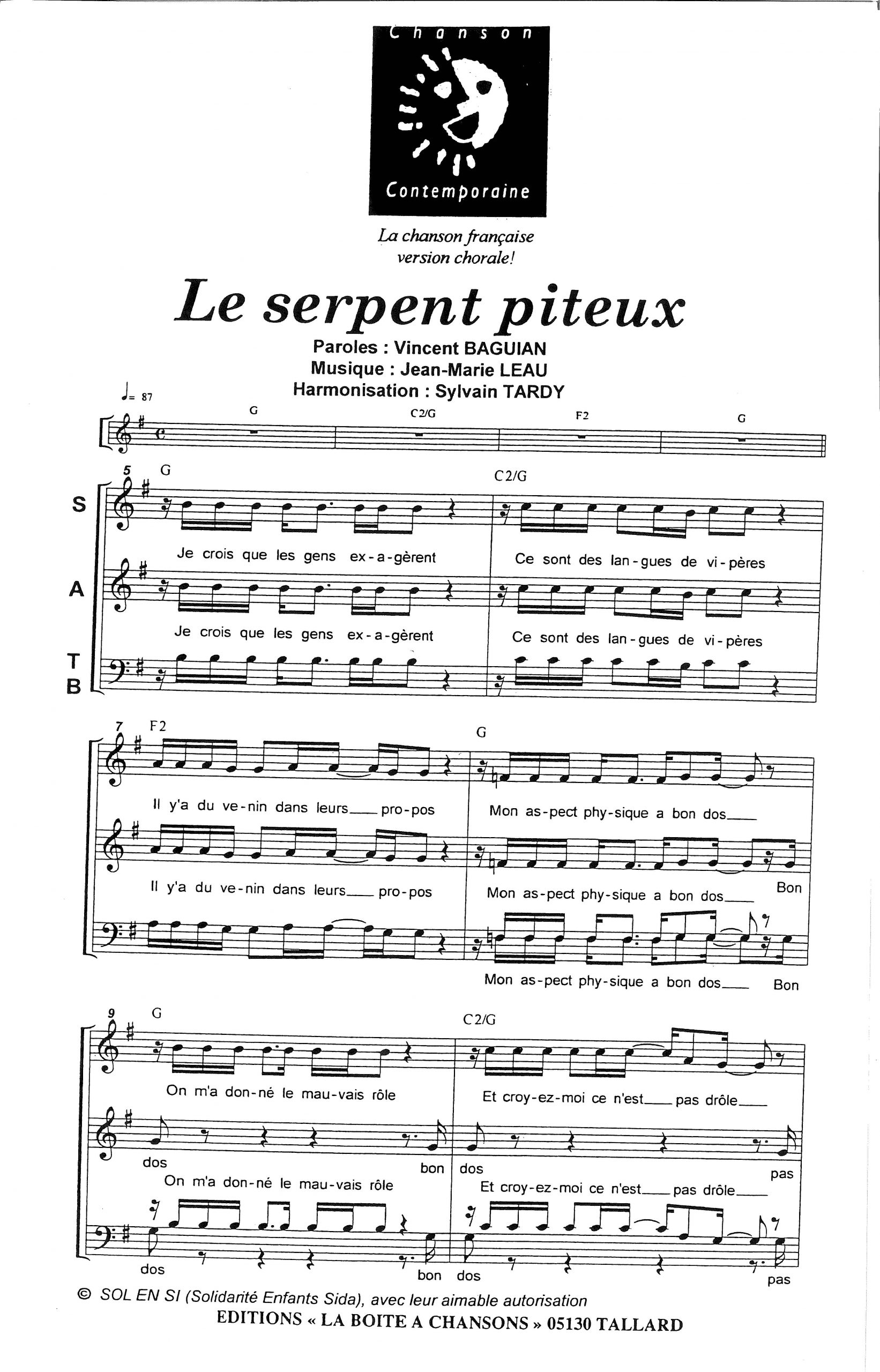 Paroles et musique de BAGUIAN / LEAU Harmonisation : Sylvain TARDY