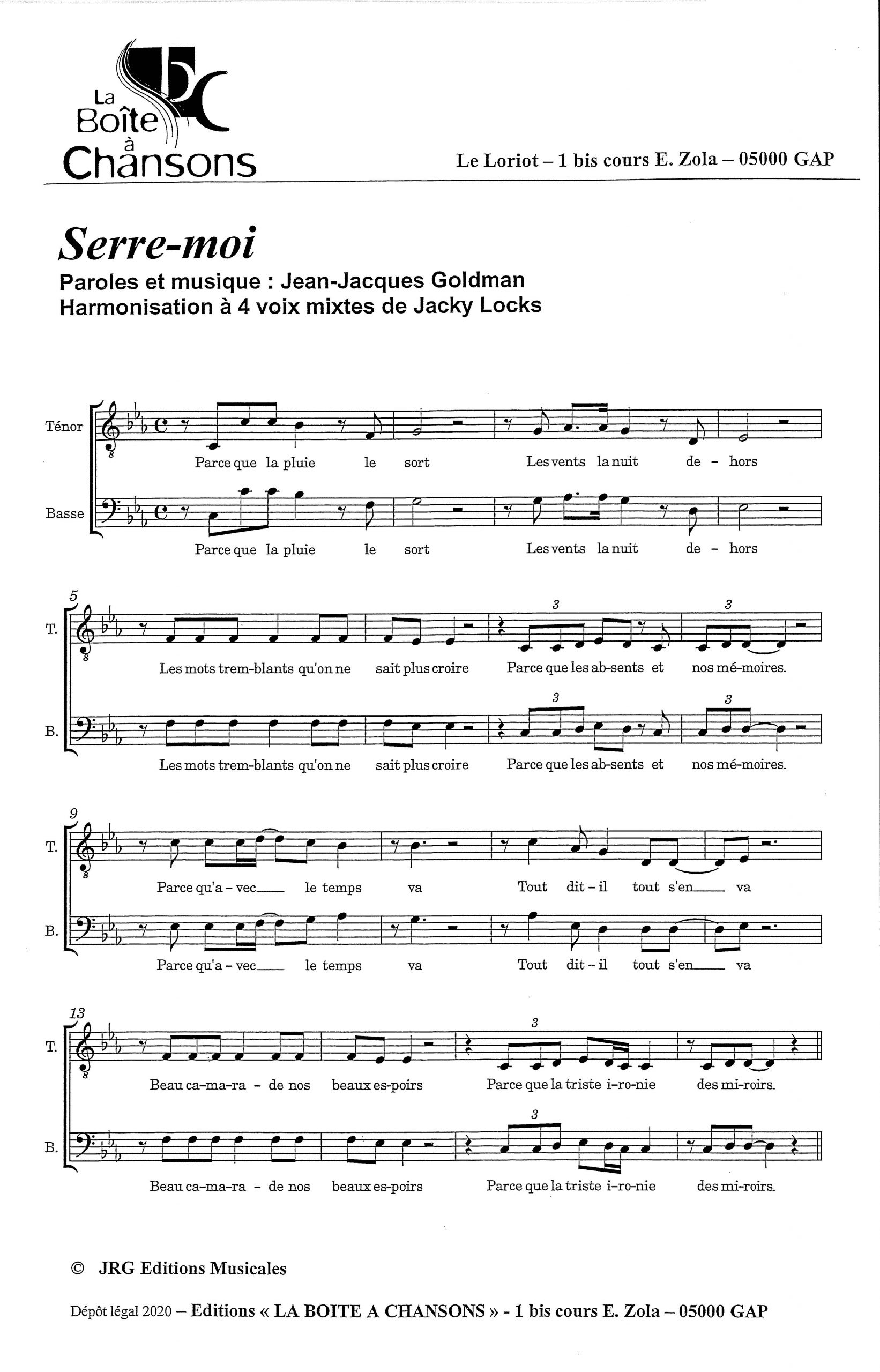 Paroles et musique : JJ Goldman Harmonisation : Jacky Locks