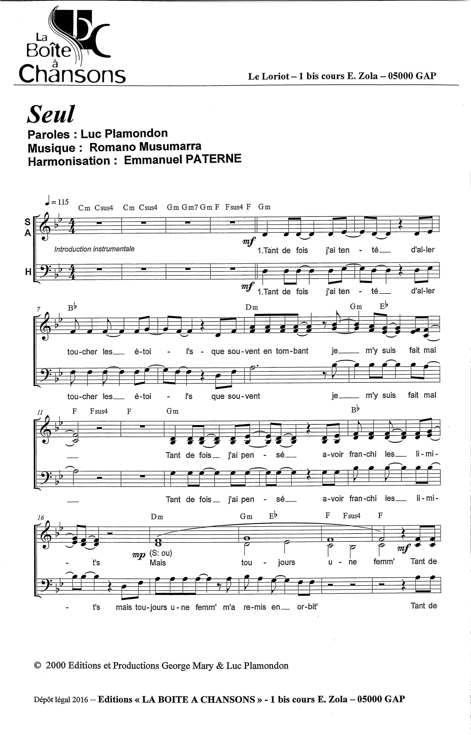 Paroles et musique : L. Plamondon / R. Musumarra Harmonisation : Emmanuel PATERNE