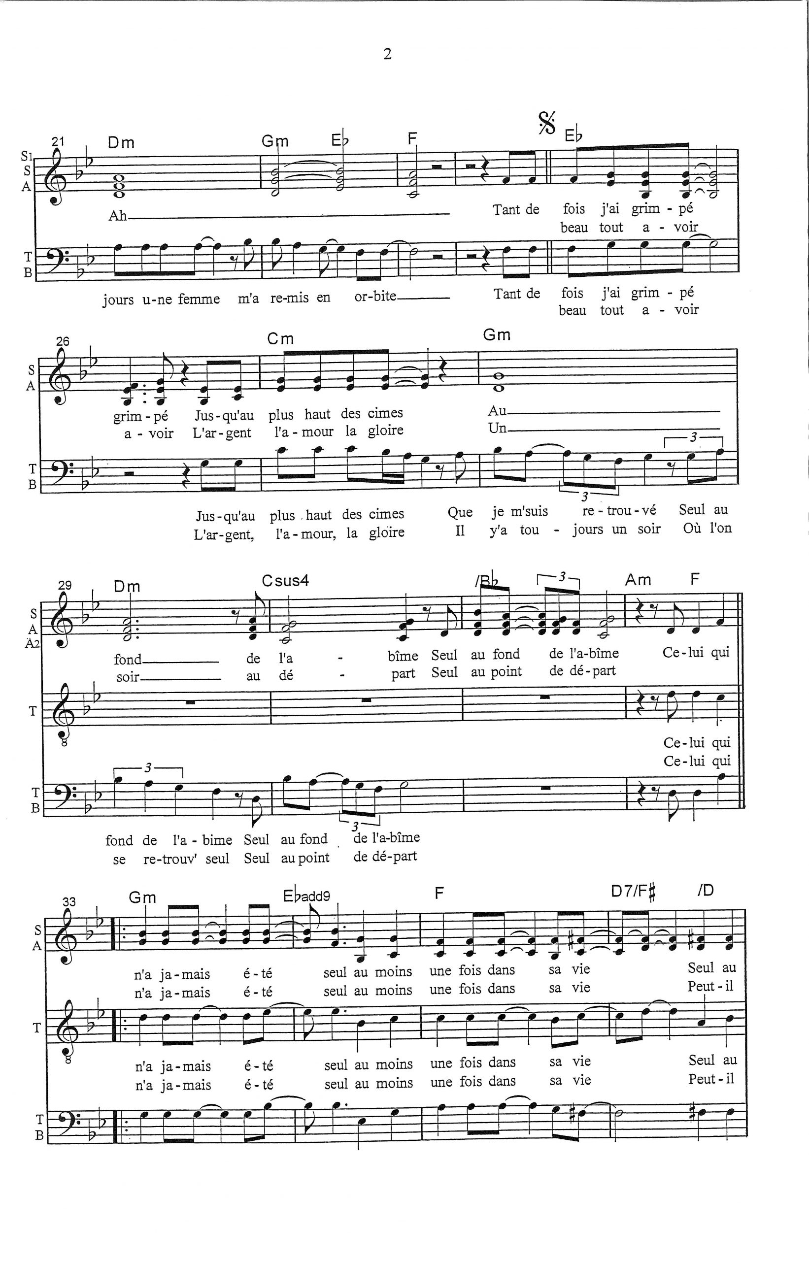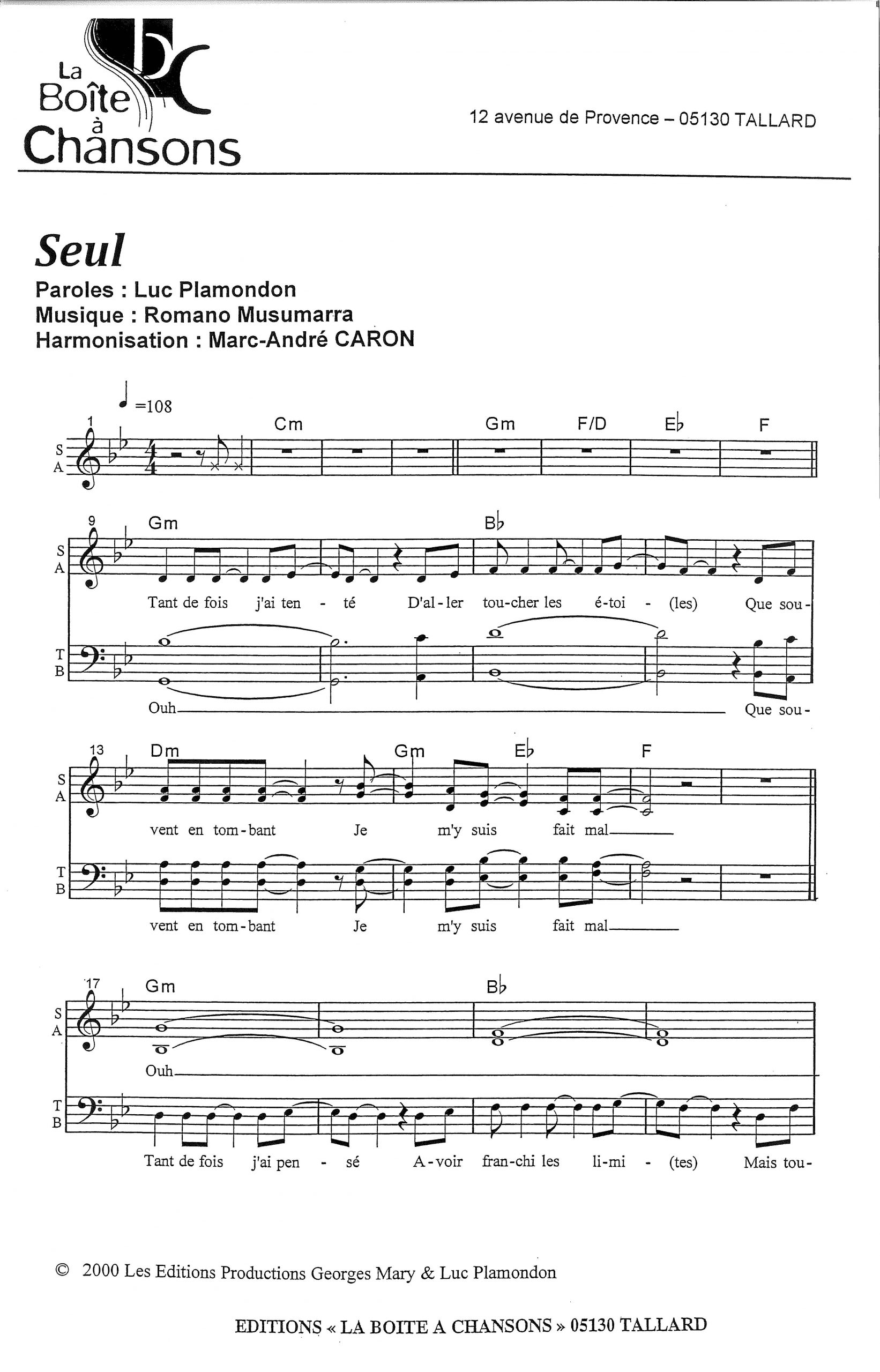 Paroles et musique de PLAMONDON/MUSUMARRA Harmonisation : Marc André CARON