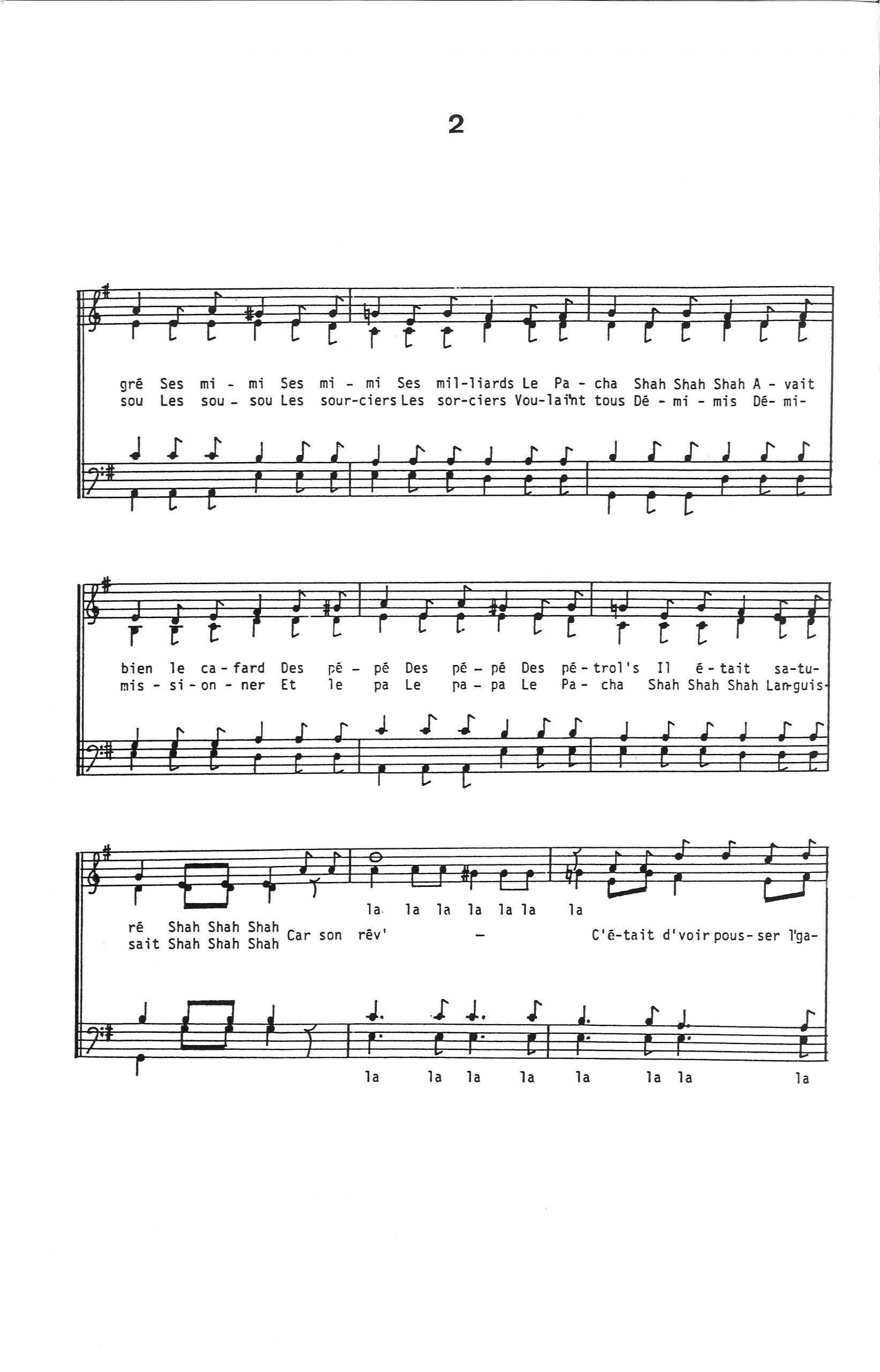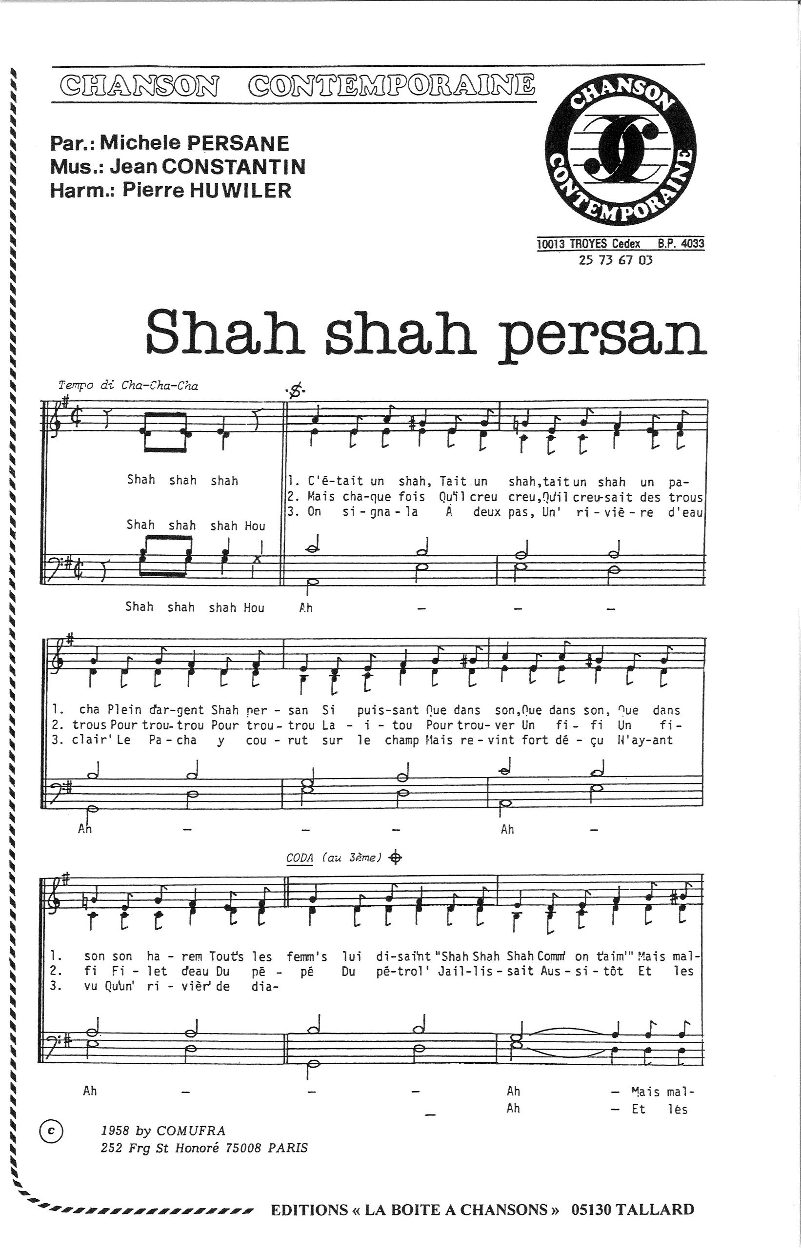 Paroles et musique de PERSANE/CONSTANTIN Harmonisation : Pierre HUWILER