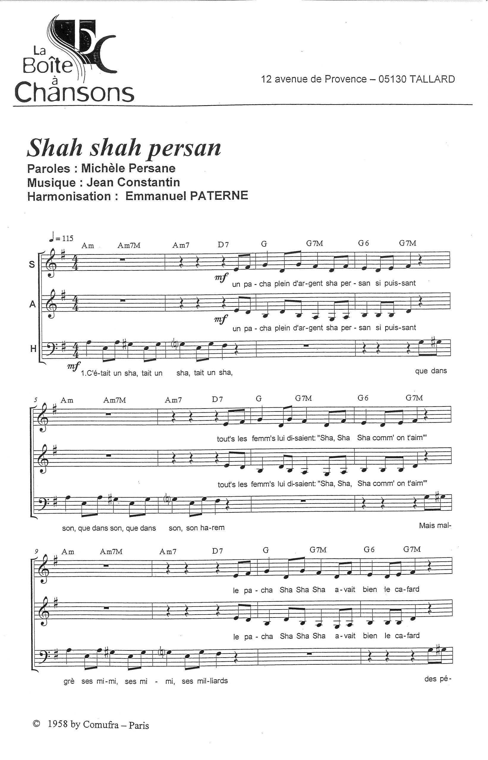 Paroles et musique : M. Persane / J. Constantin Harmonisation : Emmanuel PATERNE