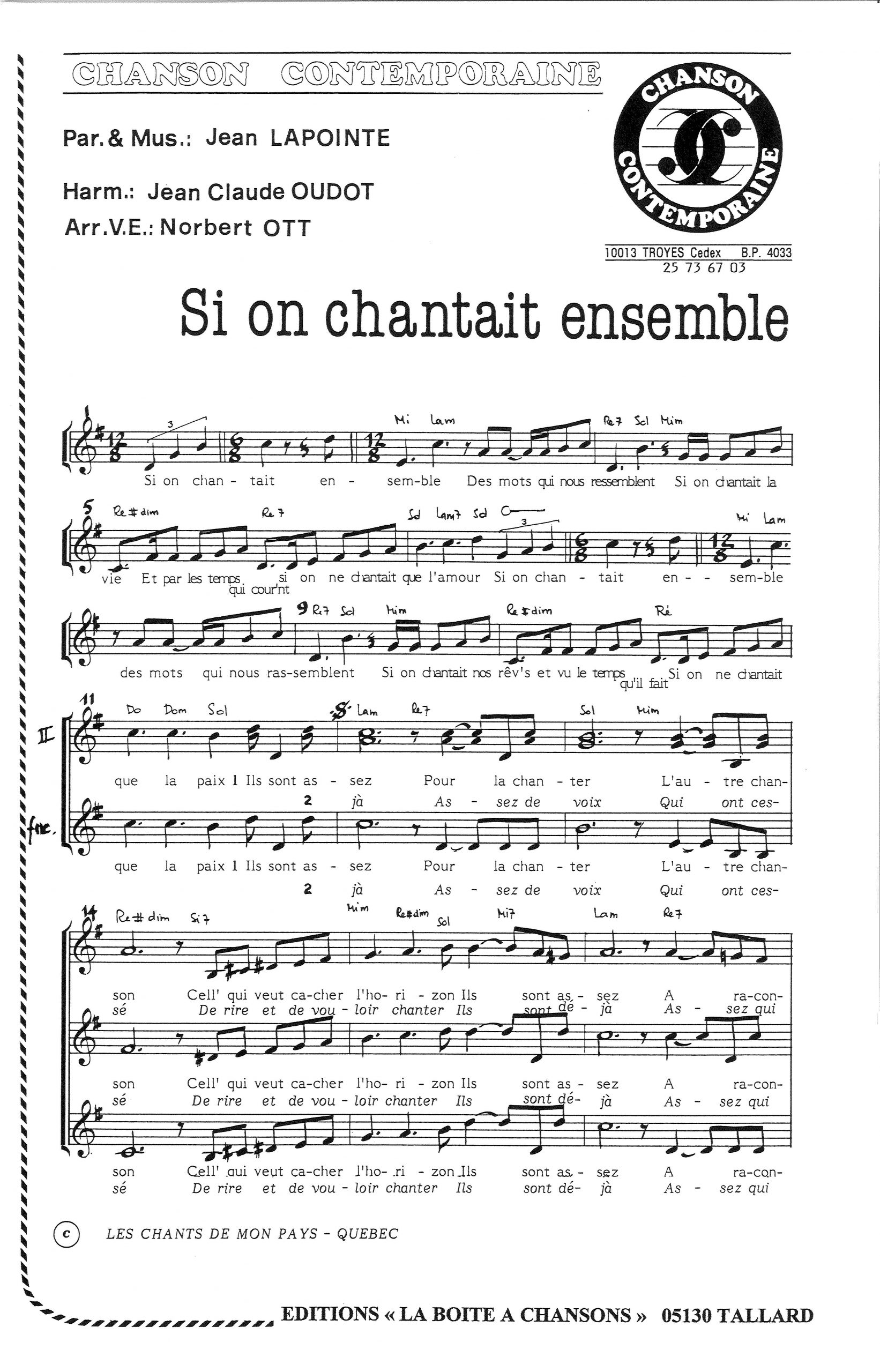 Paroles et musique de LAPOINTE PIERRE Harmonisation : Jean Claude OUDOT/Norbert OTT