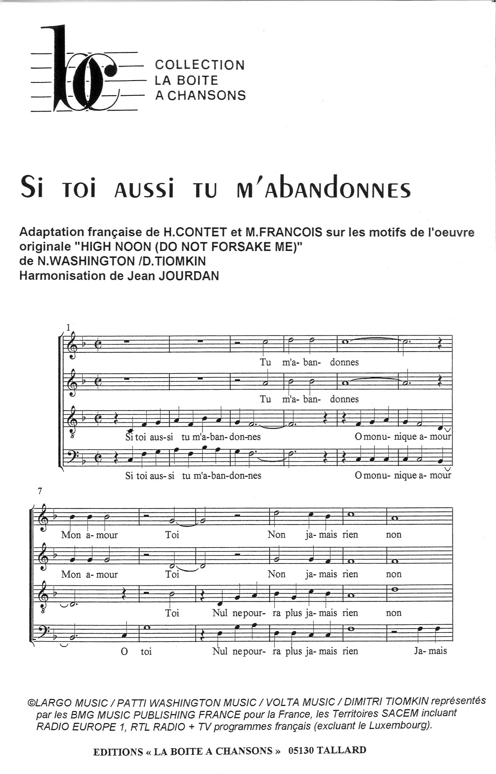 Paroles et musique de WASHINGTON/TIOMKIN Harmonisation : Jean JOURDAN