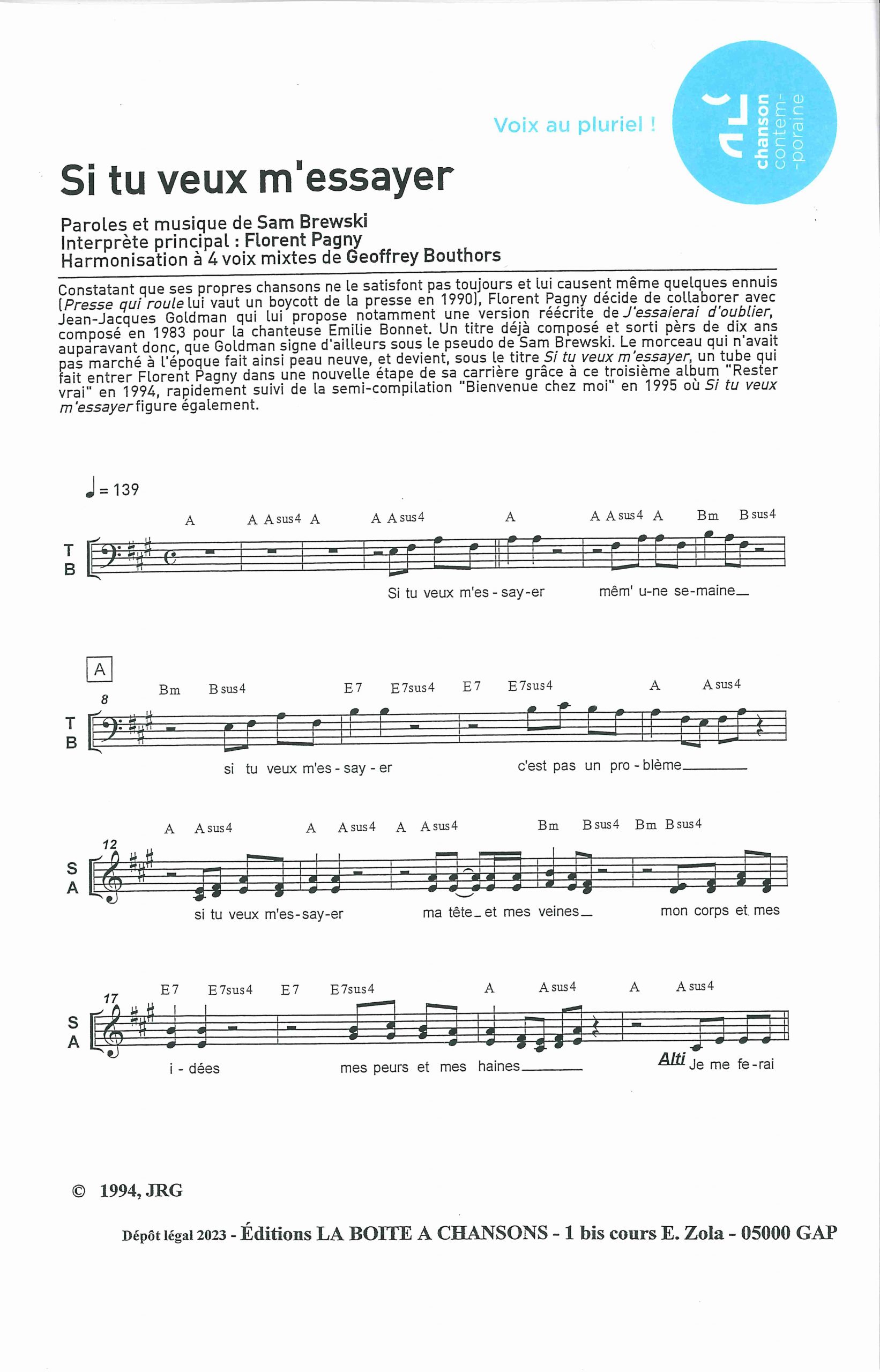 Paroles et musique : Brewski / Pagny Harmonisation : Geoffrey Bouthors