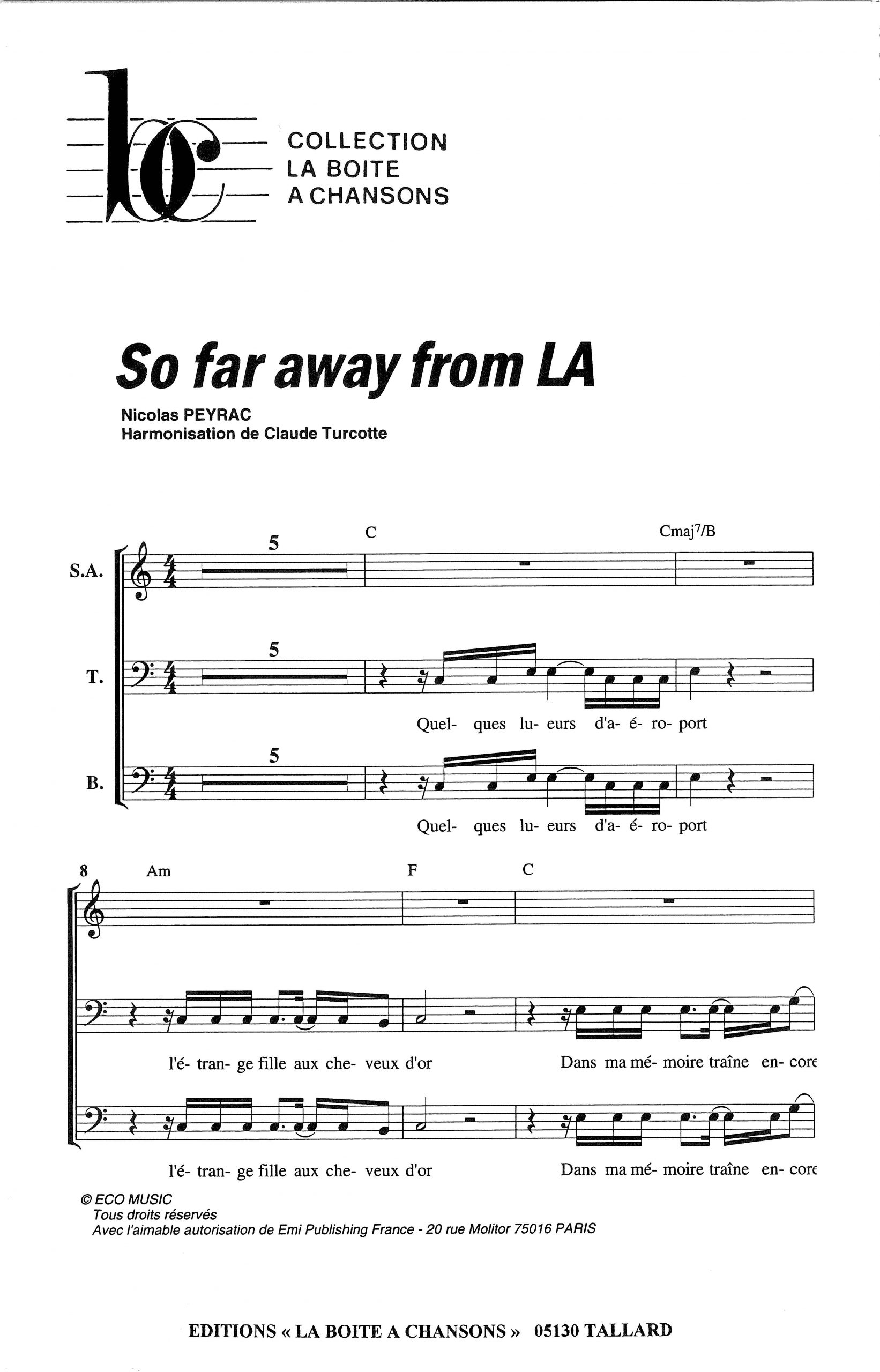 Paroles et musique de PEYRAC Harmonisation : Claude TURCOTTE
